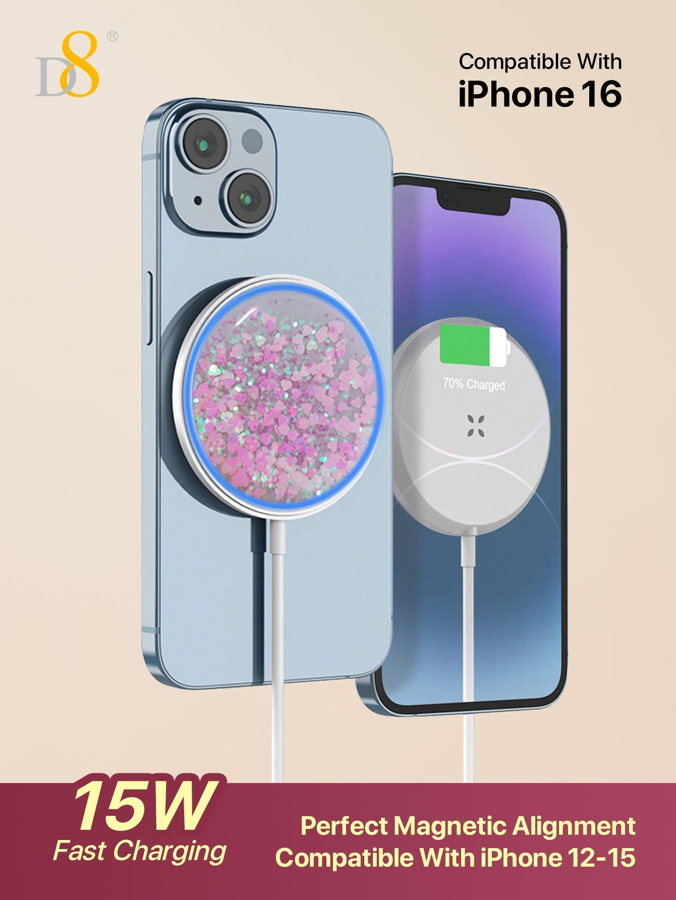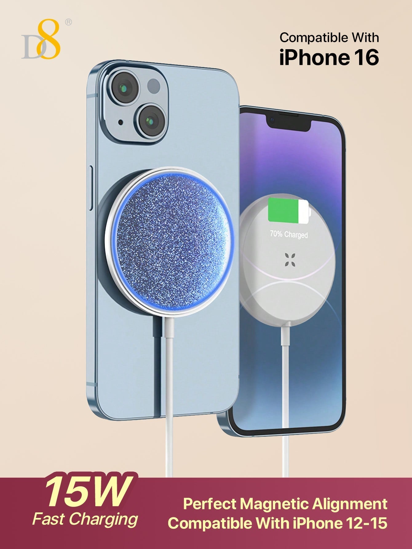 D8 15W Magnetic Wireless Charger, Strong Pad for iPhone 15/14/13/12 Pro