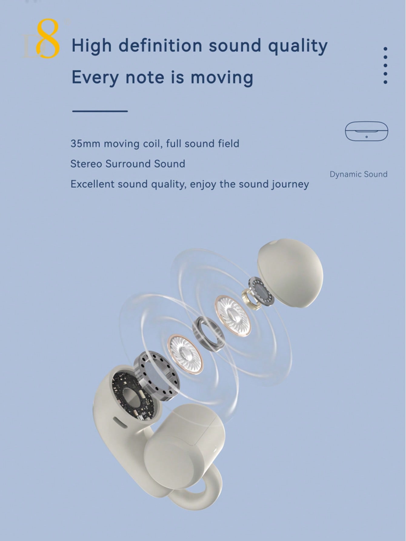 D8 Wireless Earbuds, 2024 Open Design, HiFi Sound, 55H Playtime, Type-C
