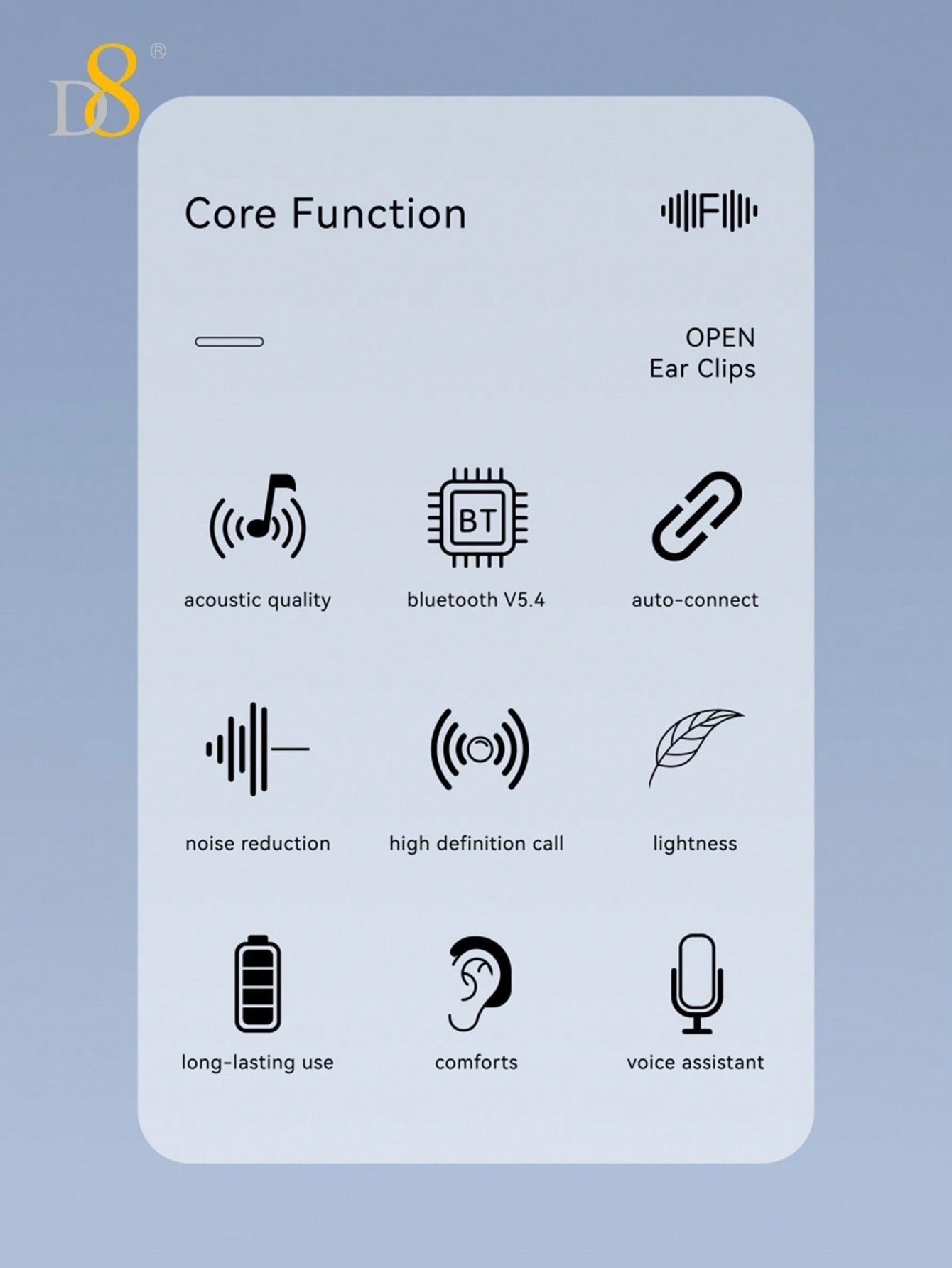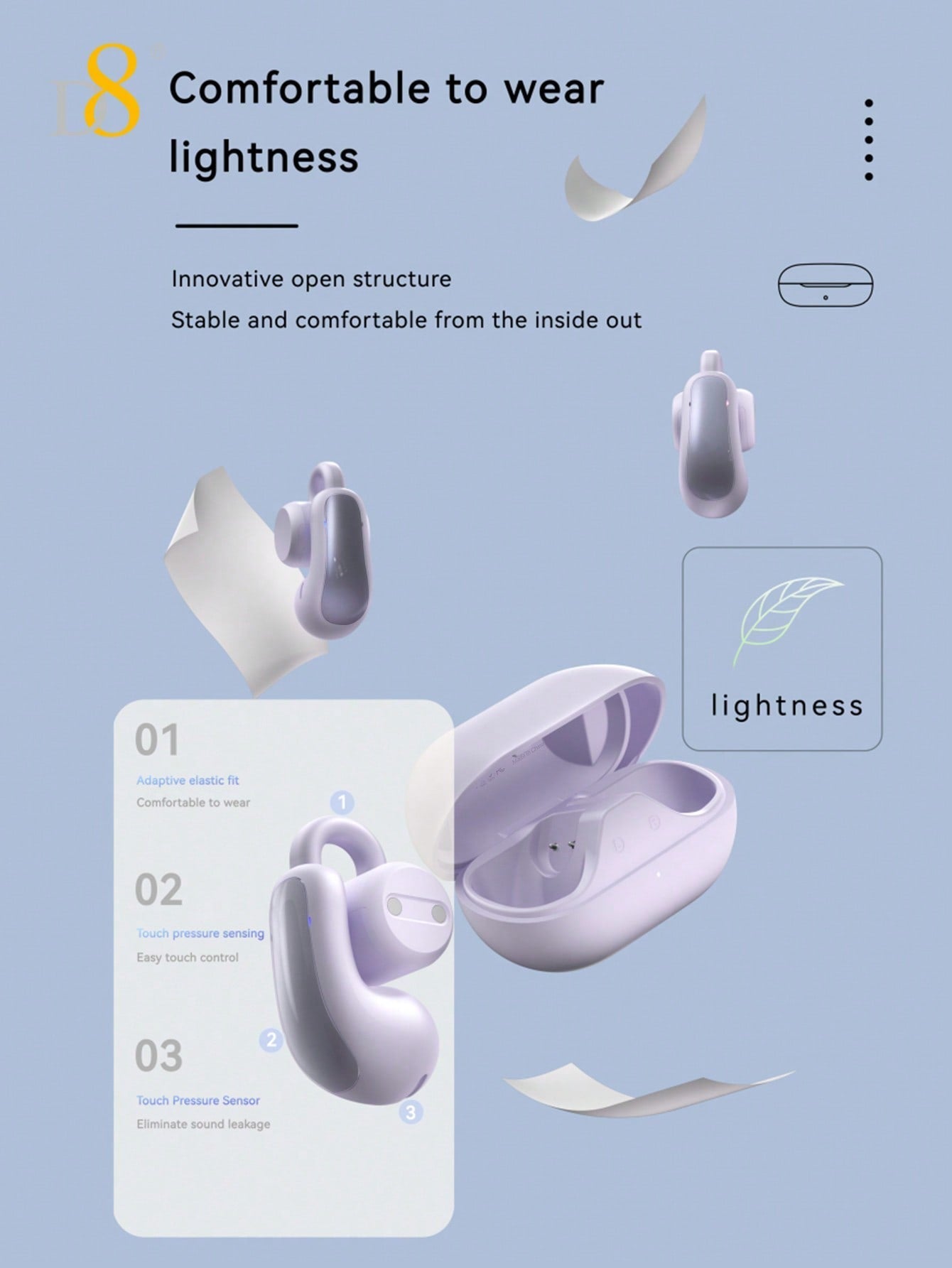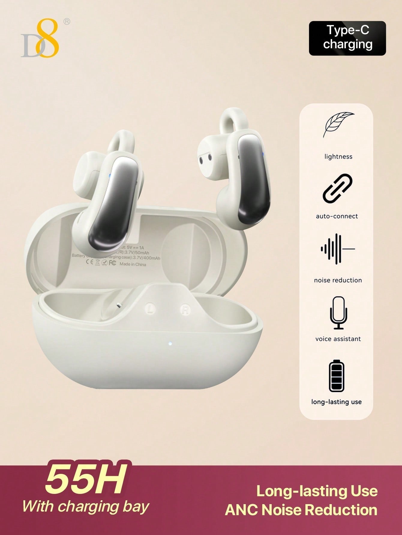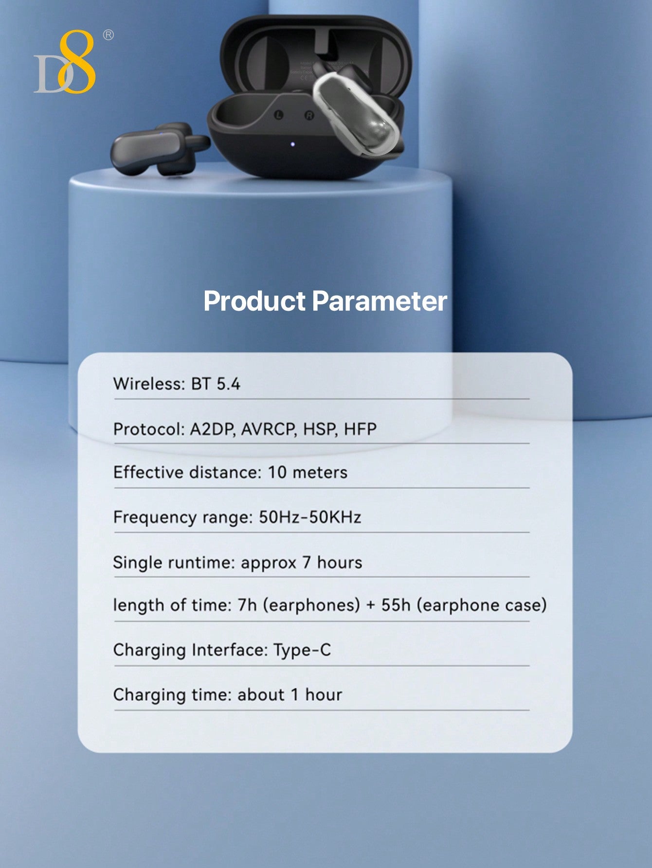 The D8 2024 Open Design Wireless Earbuds combine style, comfort, and performance for the ultimate audio experience. With HiFi sound, auto-connect technology, and an impressive 55-hour battery life, these earbuds are ideal for anyone seeking high-quality sound for music, calls, or entertainment. The open design ensures a comfortable and stable fit, while Type-C charging offers the convenience you need for a hassle-free experience. Whether you're working out, commuting, or just enjoying music at home, the D8 wireless earbuds have you covered.