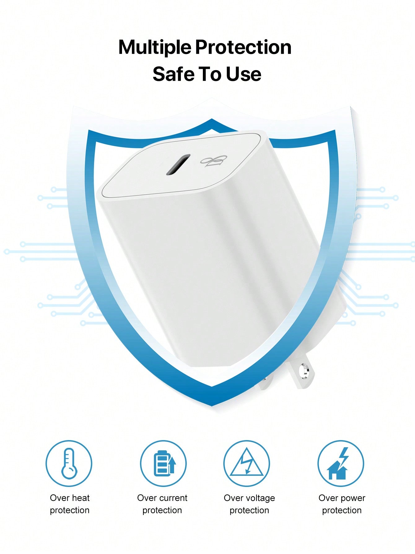 The D8 20W USB C Fast Charger is engineered to deliver rapid charging for your devices with PD Power Delivery. Whether you need to charge your iPhone 16/15, iPad Pro, or any USB-C enabled device, this ETL Listed charger ensures a safe and efficient power supply. Included is a USB-C to USB-C cable that supports fast charging for both phones and tablets.