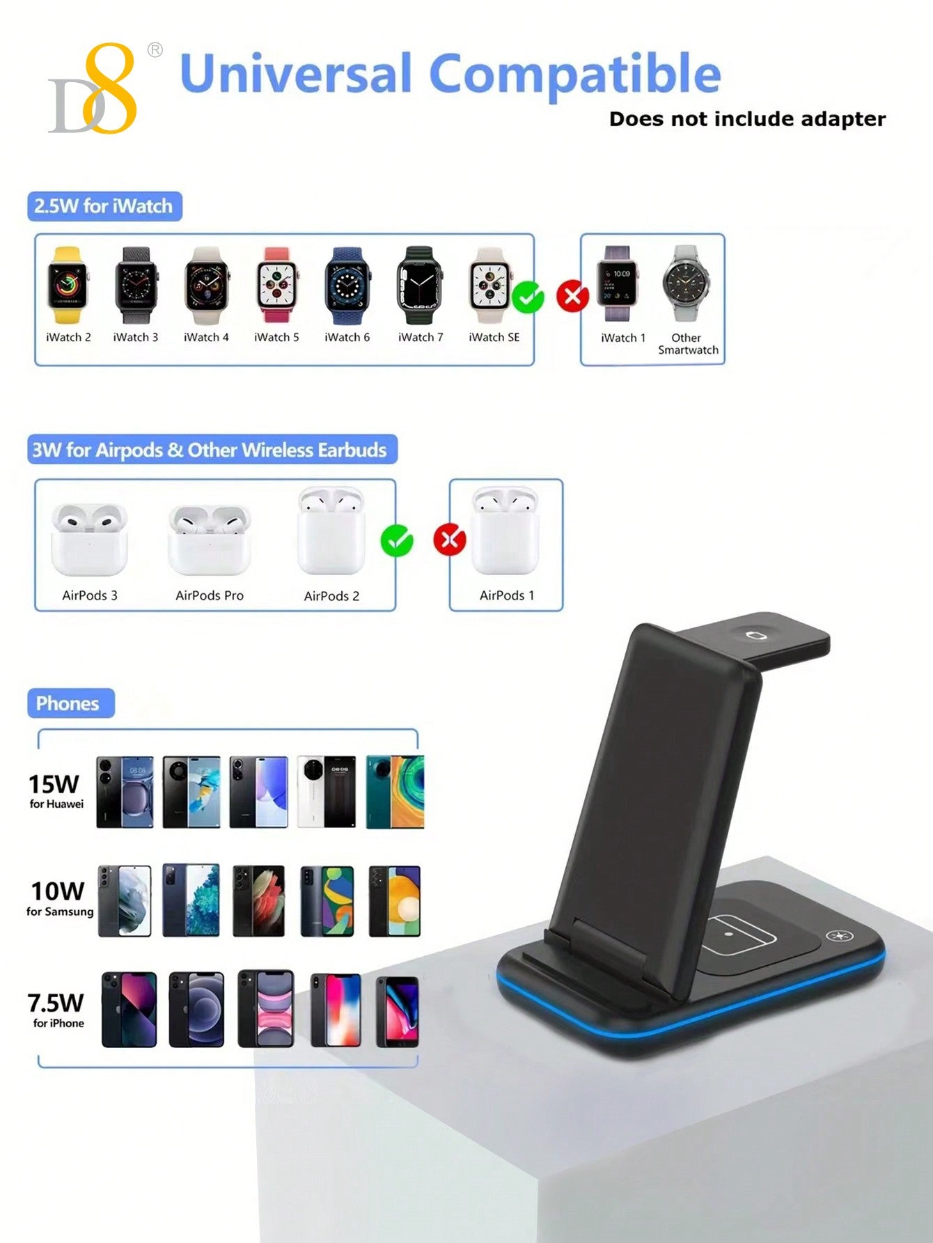 D8 3-in-1 Wireless Charger, Fast Charging Dock for iPhone/Watch/AirPods