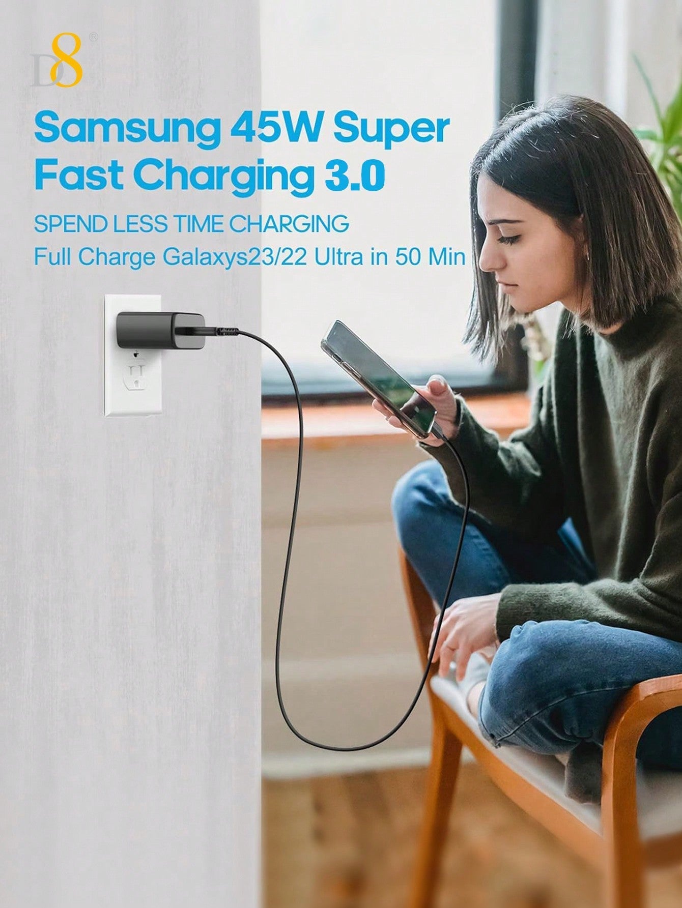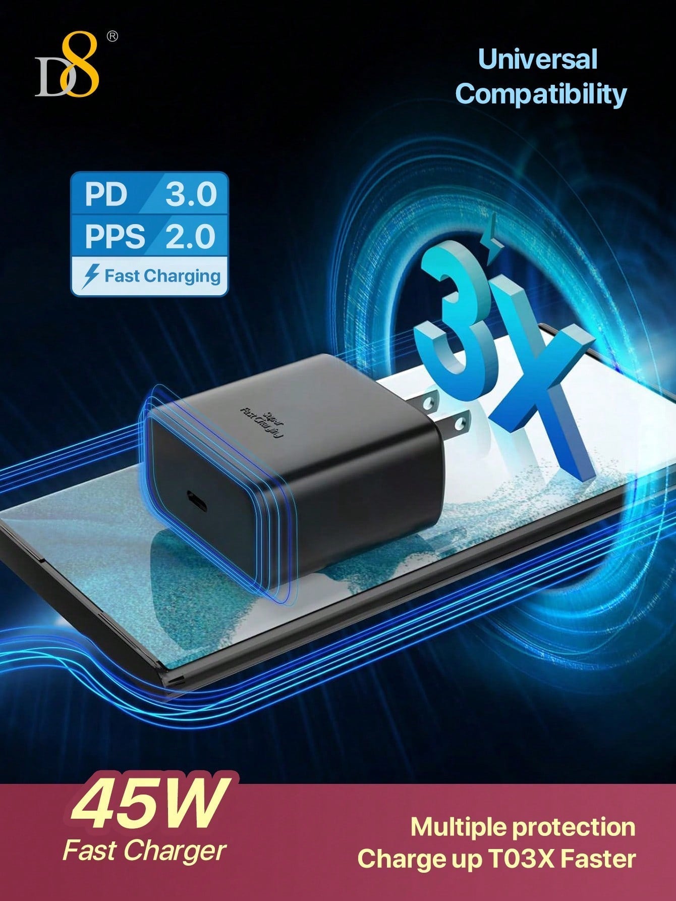 D8 45W USB-C Super Fast Charger, Wall Block for Galaxy/iPhone/Pixel/Tab