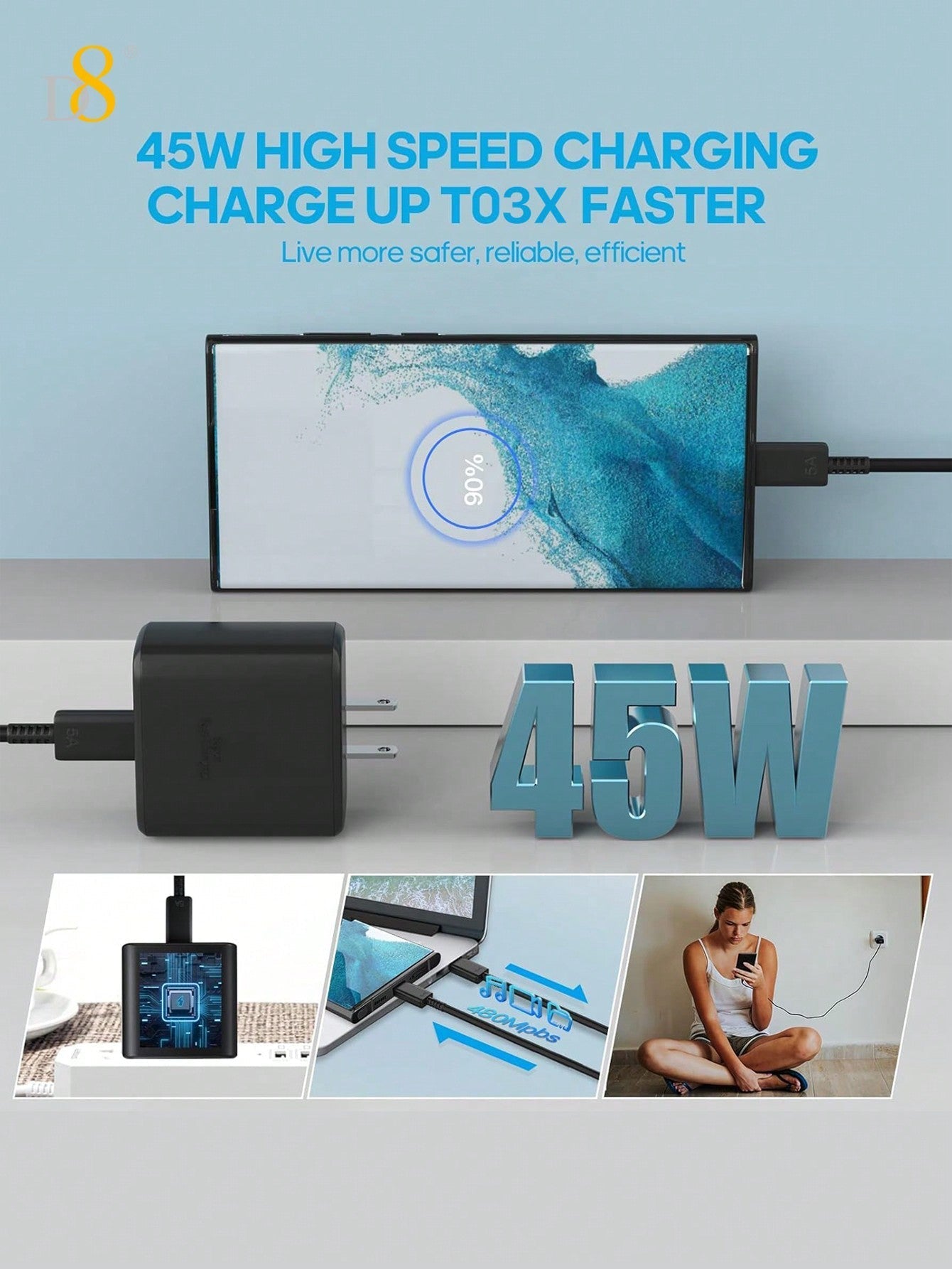 - Rapid Charging Speed: With 45W fast charging, this charger powers up your device significantly faster than standard chargers, saving you time and improving productivity.