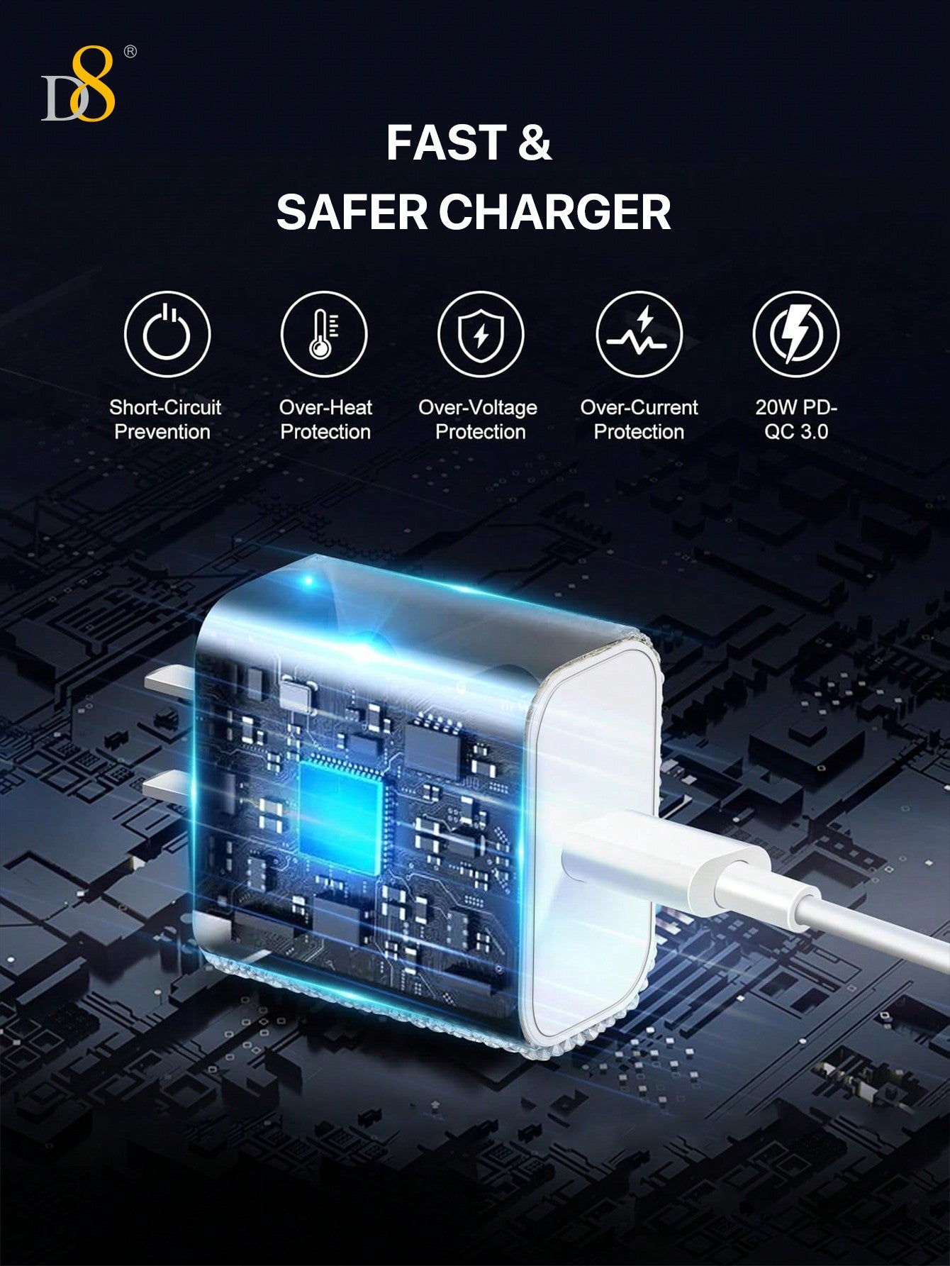 - Fast Charging Technology: With 20W PD fast charging, your devices will charge up to 3x faster compared to standard chargers, allowing you to spend less time waiting and more time using your devices.