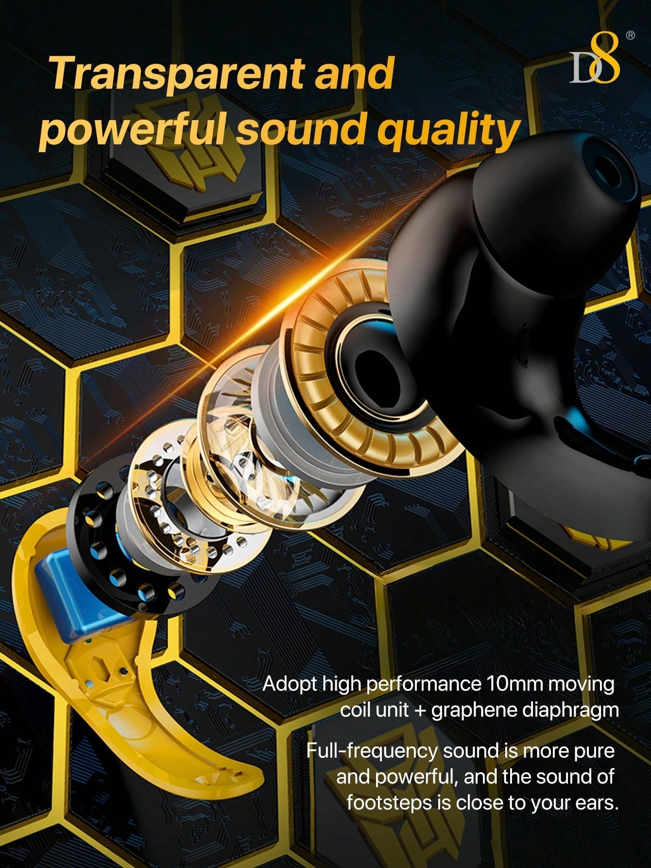 D8 Gaming Headset - HiFi Sound, LED Mic, 24H Playtime for Gaming & Sports