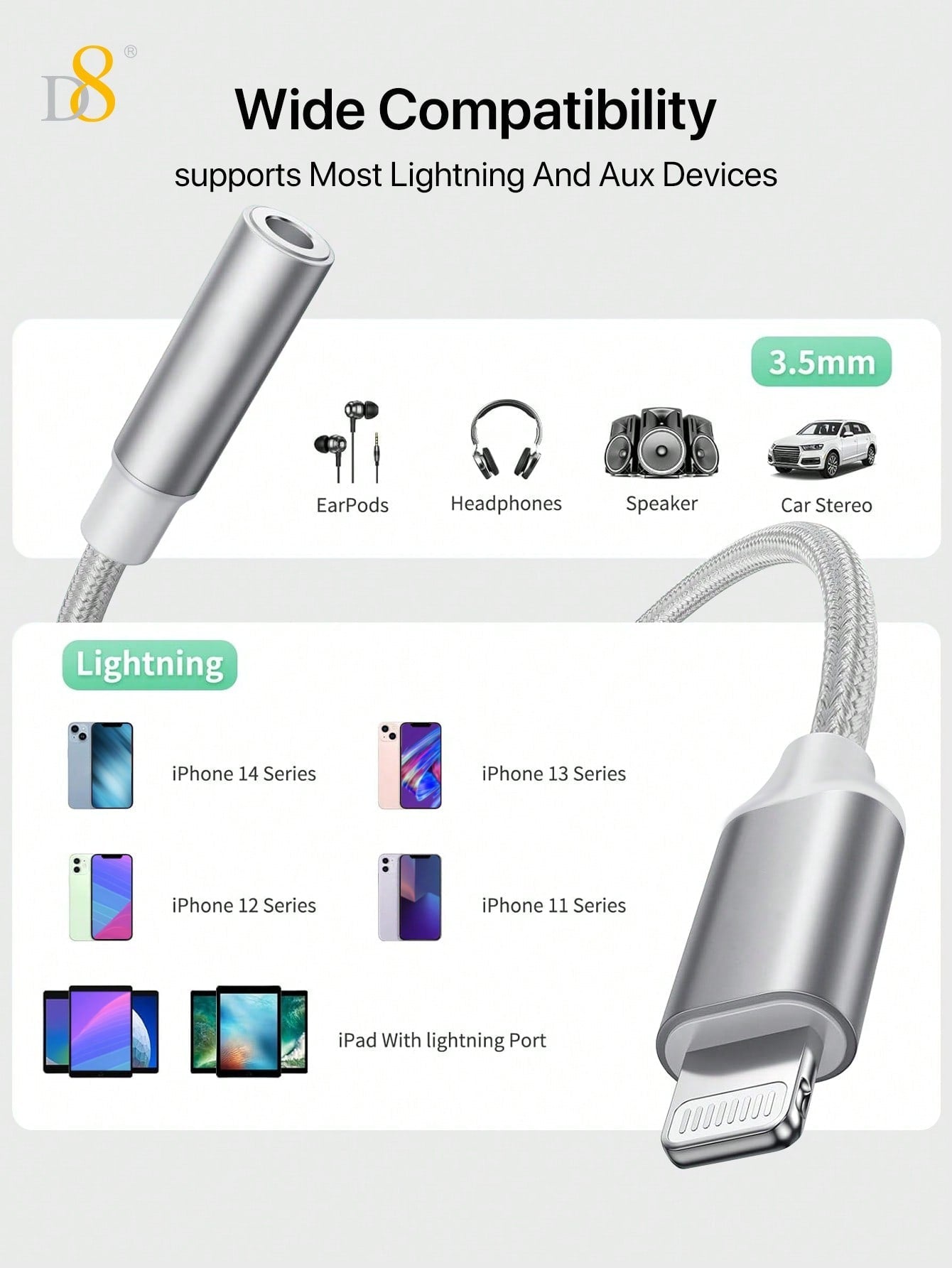 The D8 iPhone Headphone Adapter offers a perfect solution for iPhone users looking to connect their 3.5mm headphones to their Apple devices. With its Apple MFi Certification, premium sound quality, and lightweight portability, it provides a seamless listening experience. Whether you’re using it for music, calls, or podcasts, this adapter ensures that you can enjoy high-quality audio without compromise.