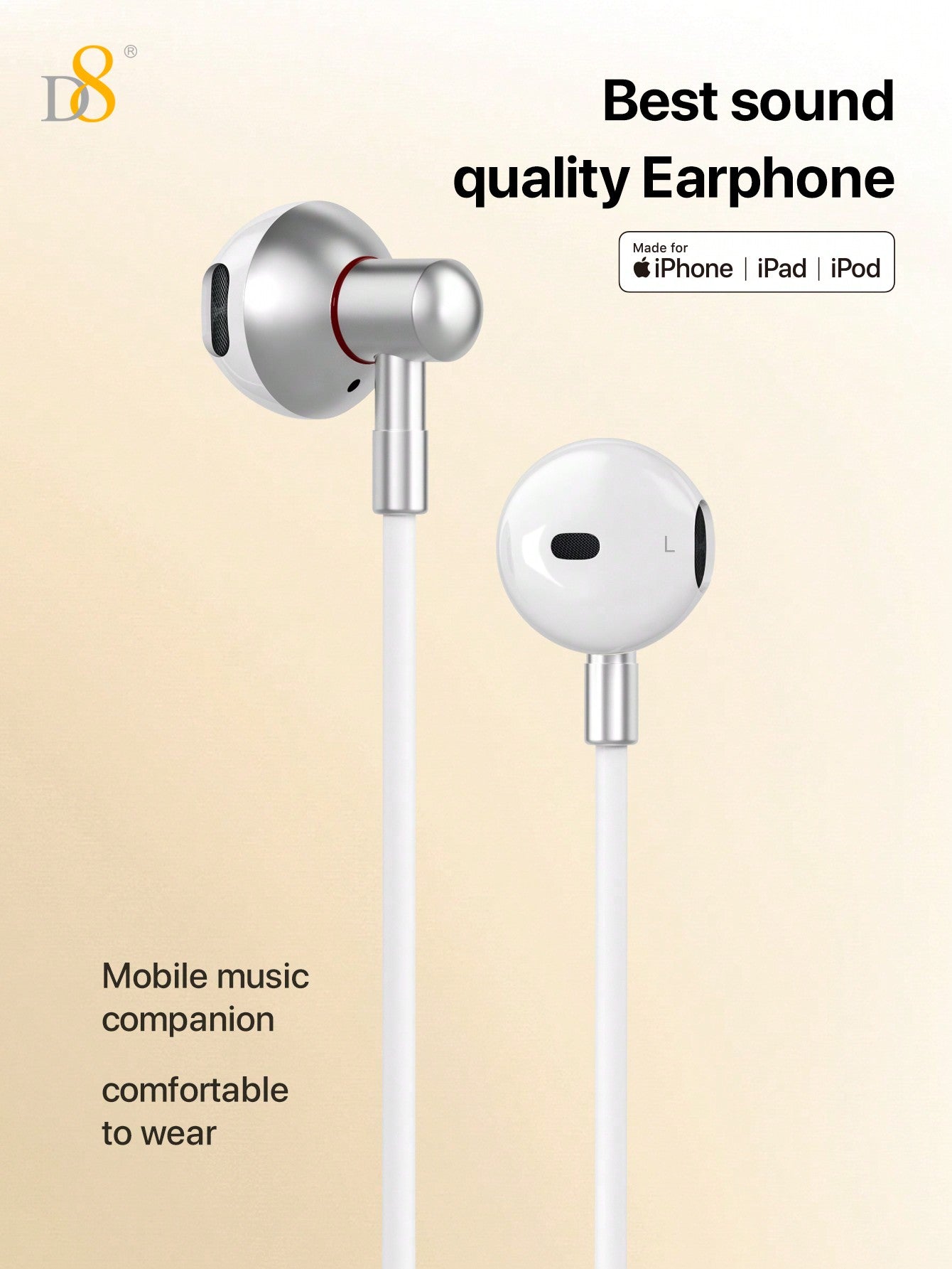 - For Music & Entertainment: Enjoy your favorite songs, podcasts, and videos with the high-fidelity audio delivered by the D8 Lightning headphones. The in-ear design ensures that you can listen to your content without distractions.