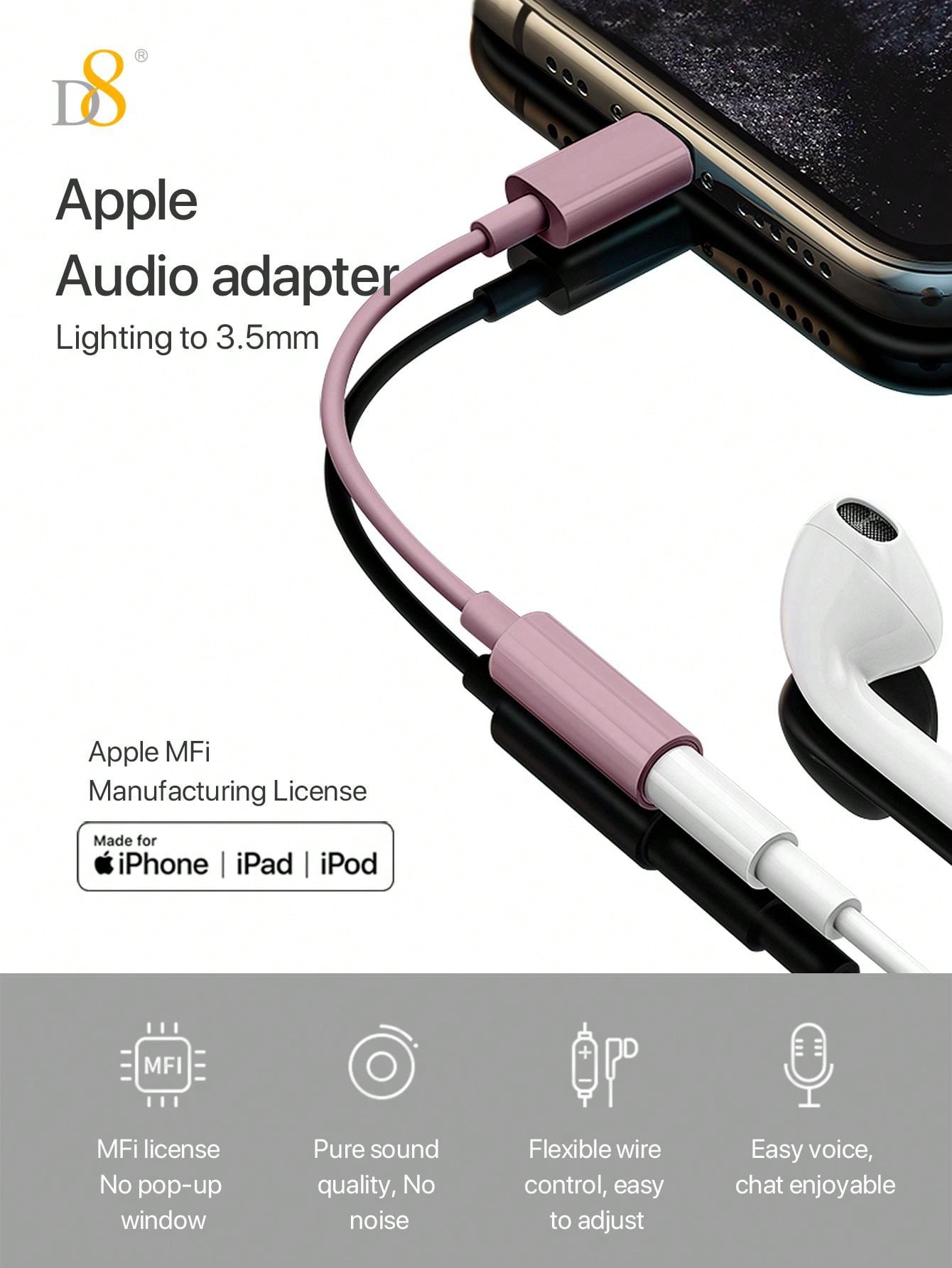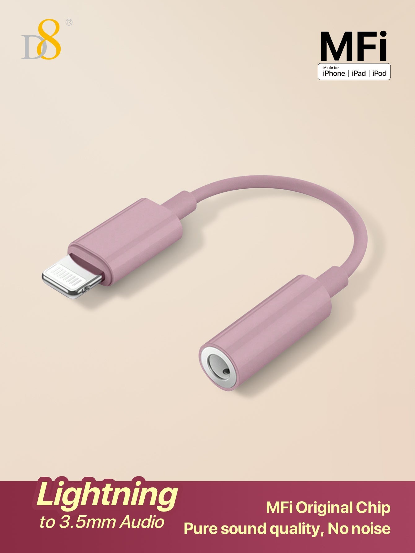 The D8 MFI Lightning to 3.5mm Audio Adapter is a must-have accessory for iPhone and iPad users who want to maintain high-quality sound while using 3.5mm headphones or earphones. With its MFI certification, HiFi DAC stereo sound, and microphone support, this adapter is the perfect solution for music, calls, and voice commands. Enjoy premium audio quality with the convenience of a compact, reliable design.