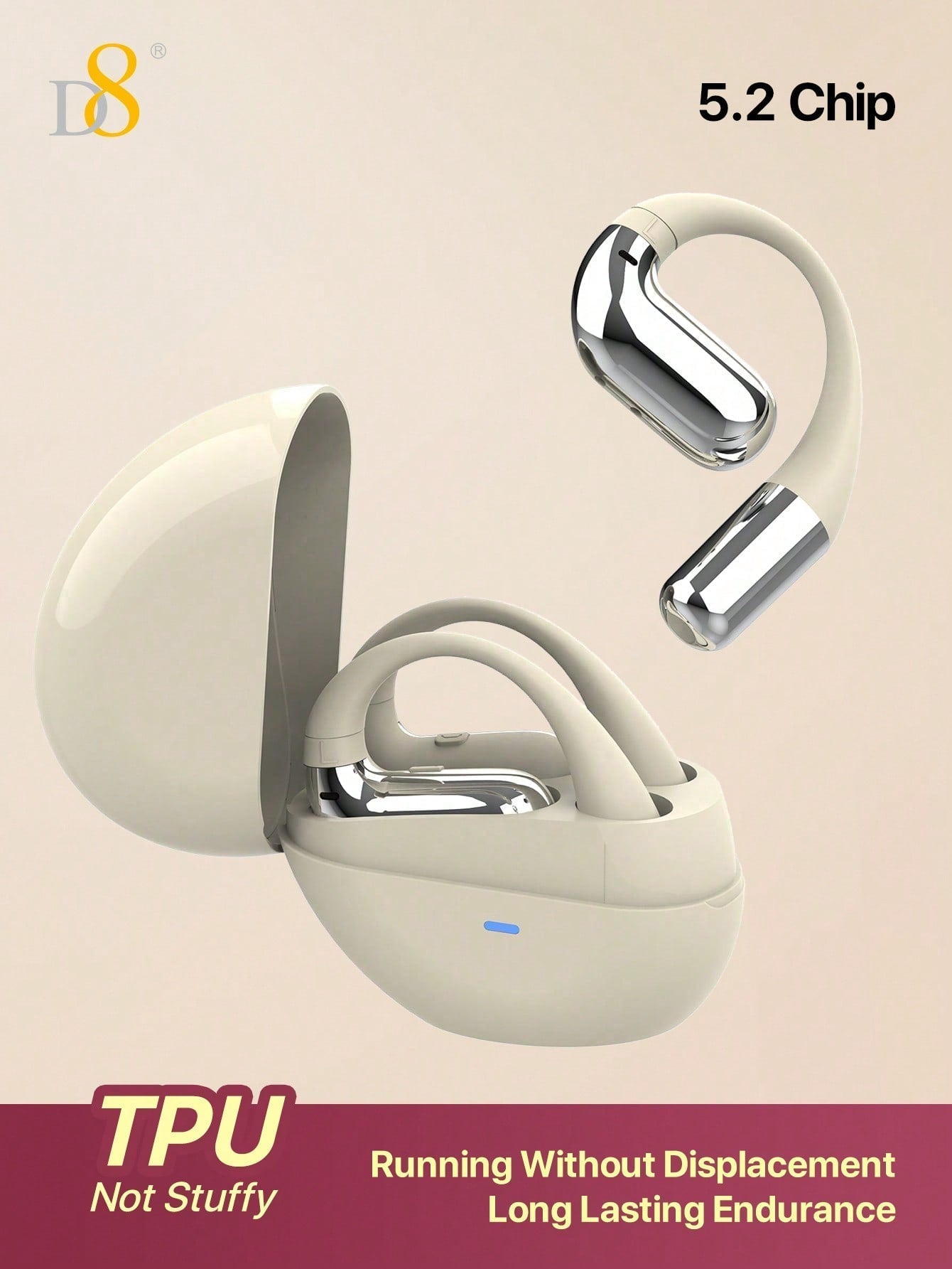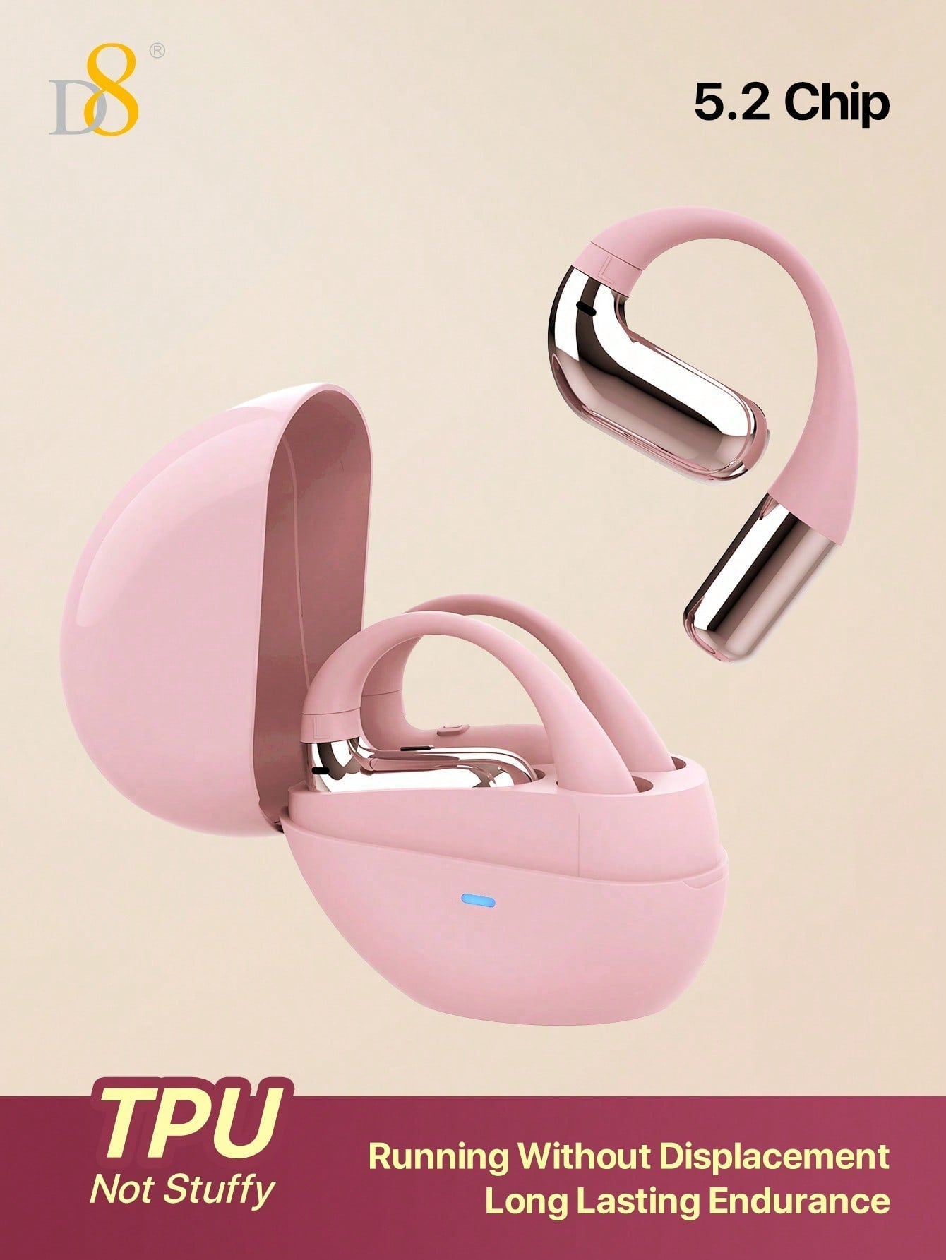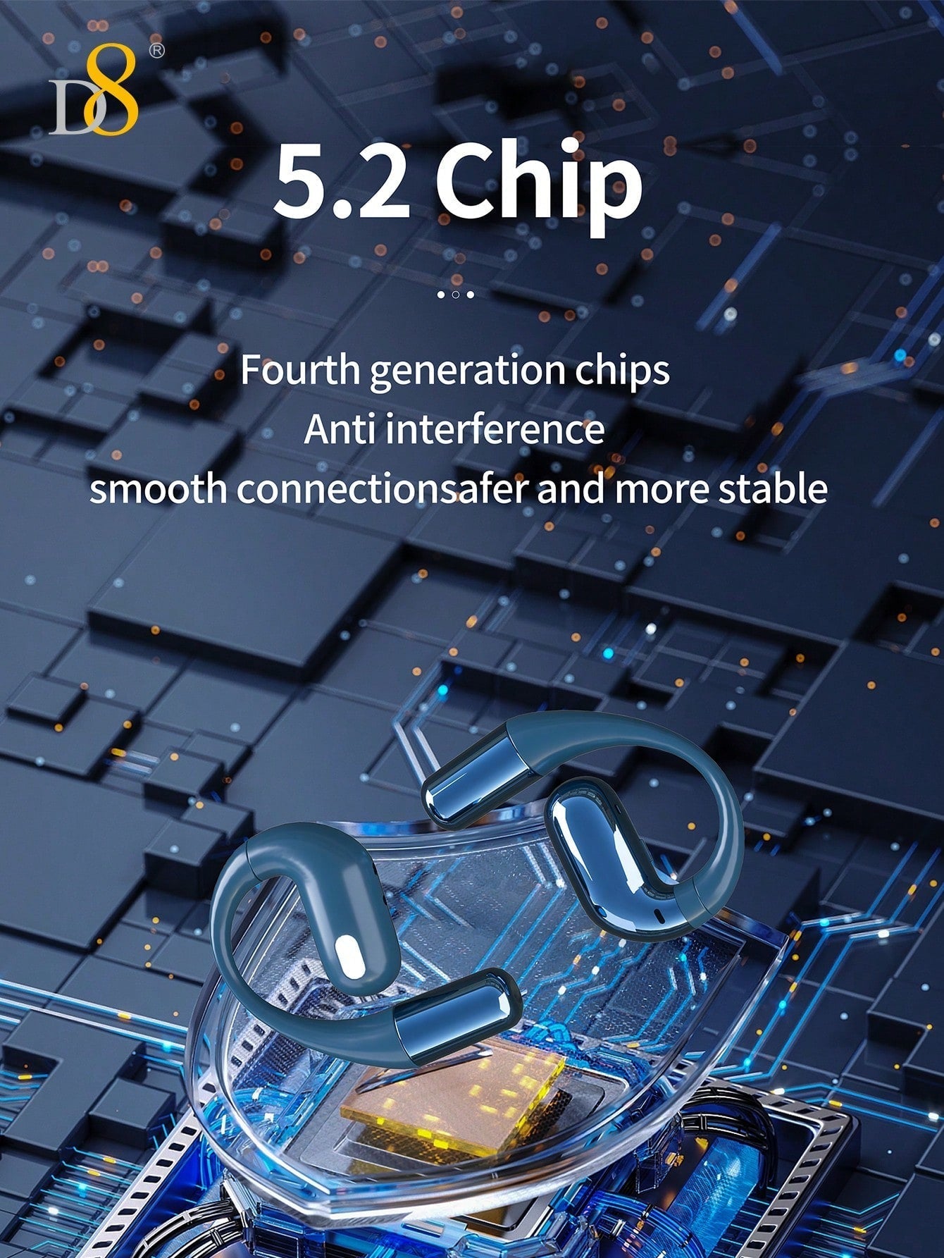 D8 Open-Ear Sport Headphones, 5.2 Stereo, Bass Boost, 7H Playtime, IPX5