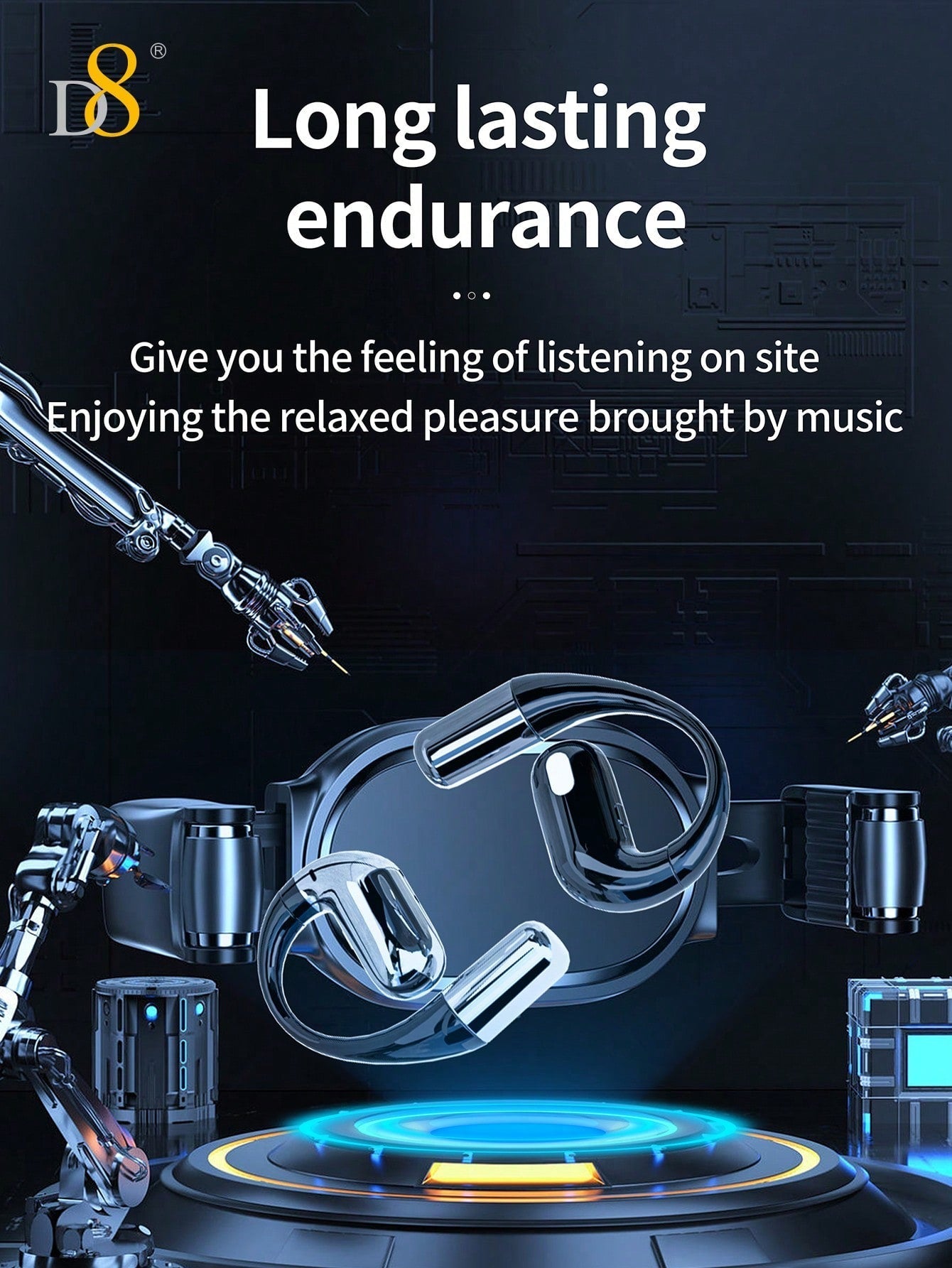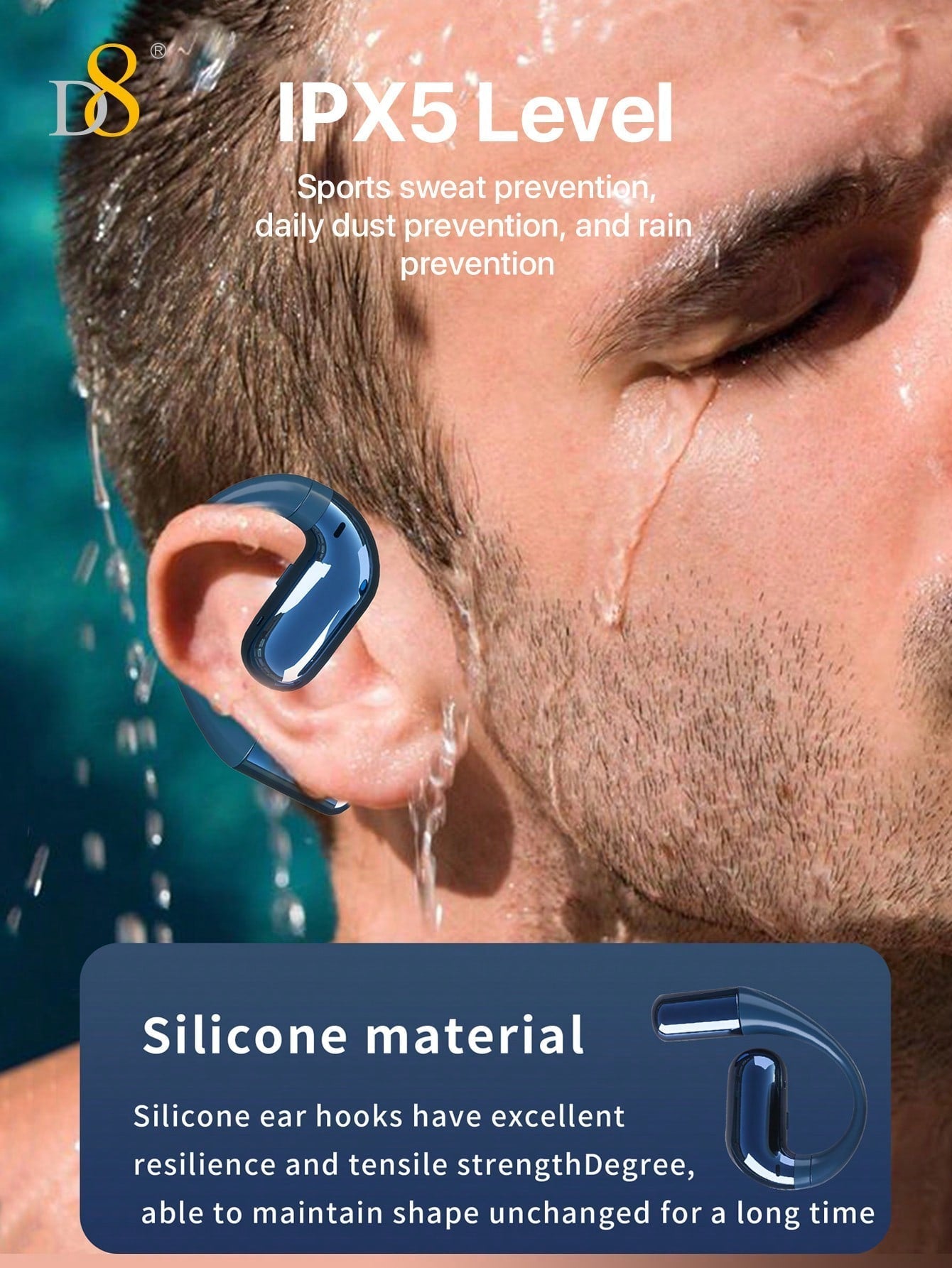 The D8 Open-Ear Headphones provide a premium combination of comfort, durability, and superior sound quality. With features like bass boost, IPX5 waterproof protection, and earhooks, they are the perfect choice for sports enthusiasts, gamers, and anyone looking for reliable and comfortable earbuds for daily use. Whether you’re running, working out, or gaming, these open-ear headphones offer a comfortable, secure fit and an immersive audio experience that keeps you focused and motivated.