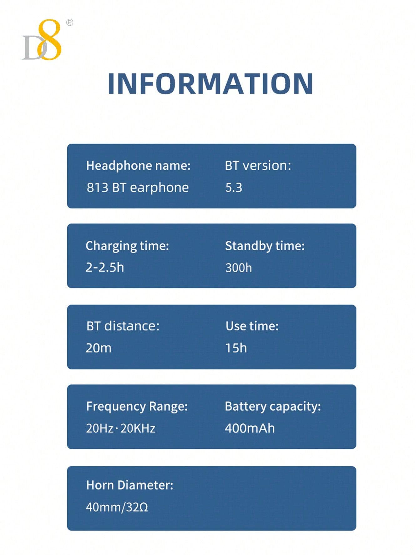 The D8 Over-Ear Wireless Headphones are built for powerful sound, deep bass, and all-day comfort. With multiple connection options, a long battery life, and customizable EQ modes, these headphones are perfect for music lovers, professionals, and travelers. Whether you're working, gaming, or simply relaxing, the D8 headphones provide an unparalleled listening experience with crisp audio and immersive bass.