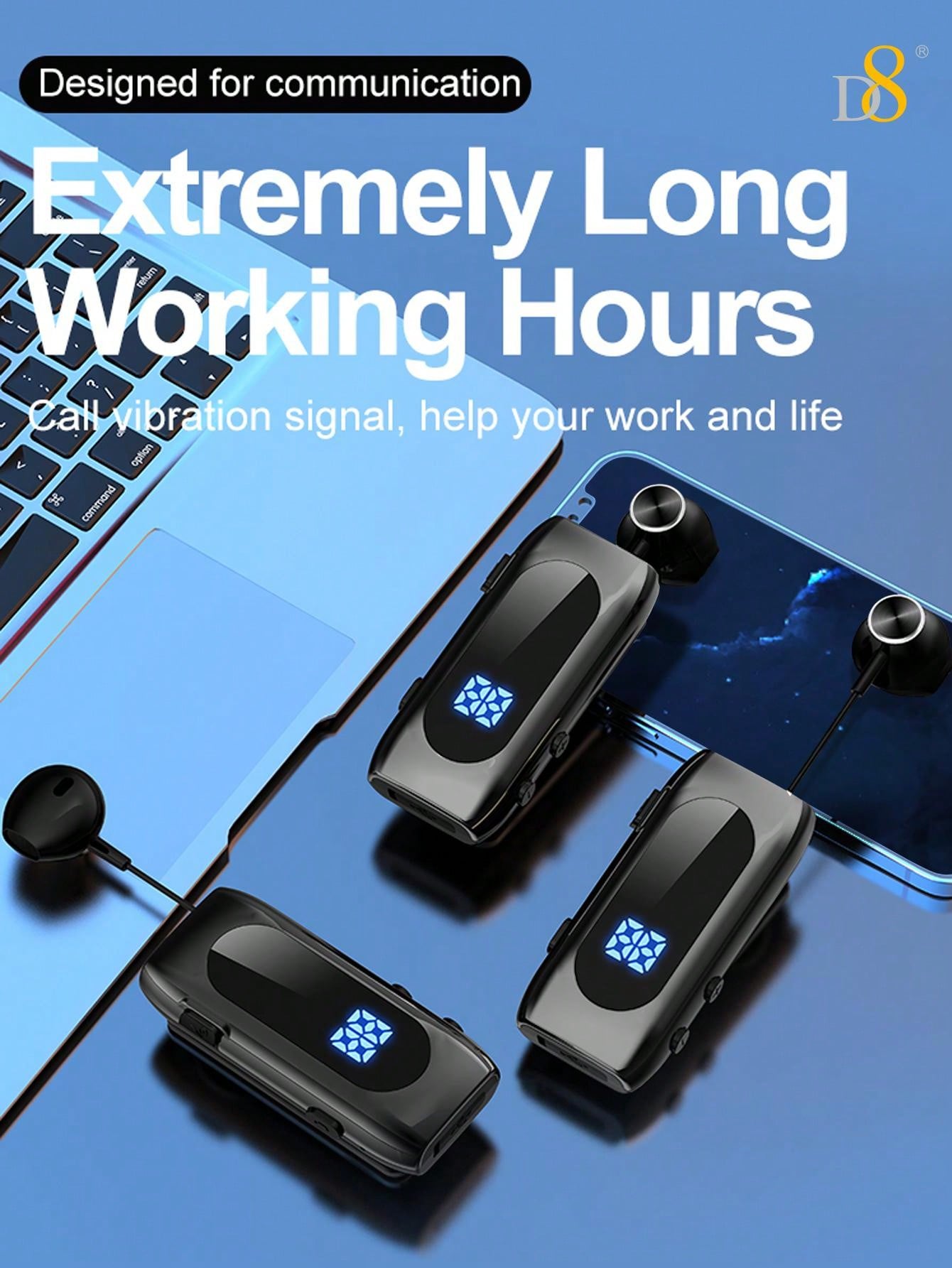 D8 Retractable Wireless Headset, LED Display, Noise-Canceling, 20H Talk