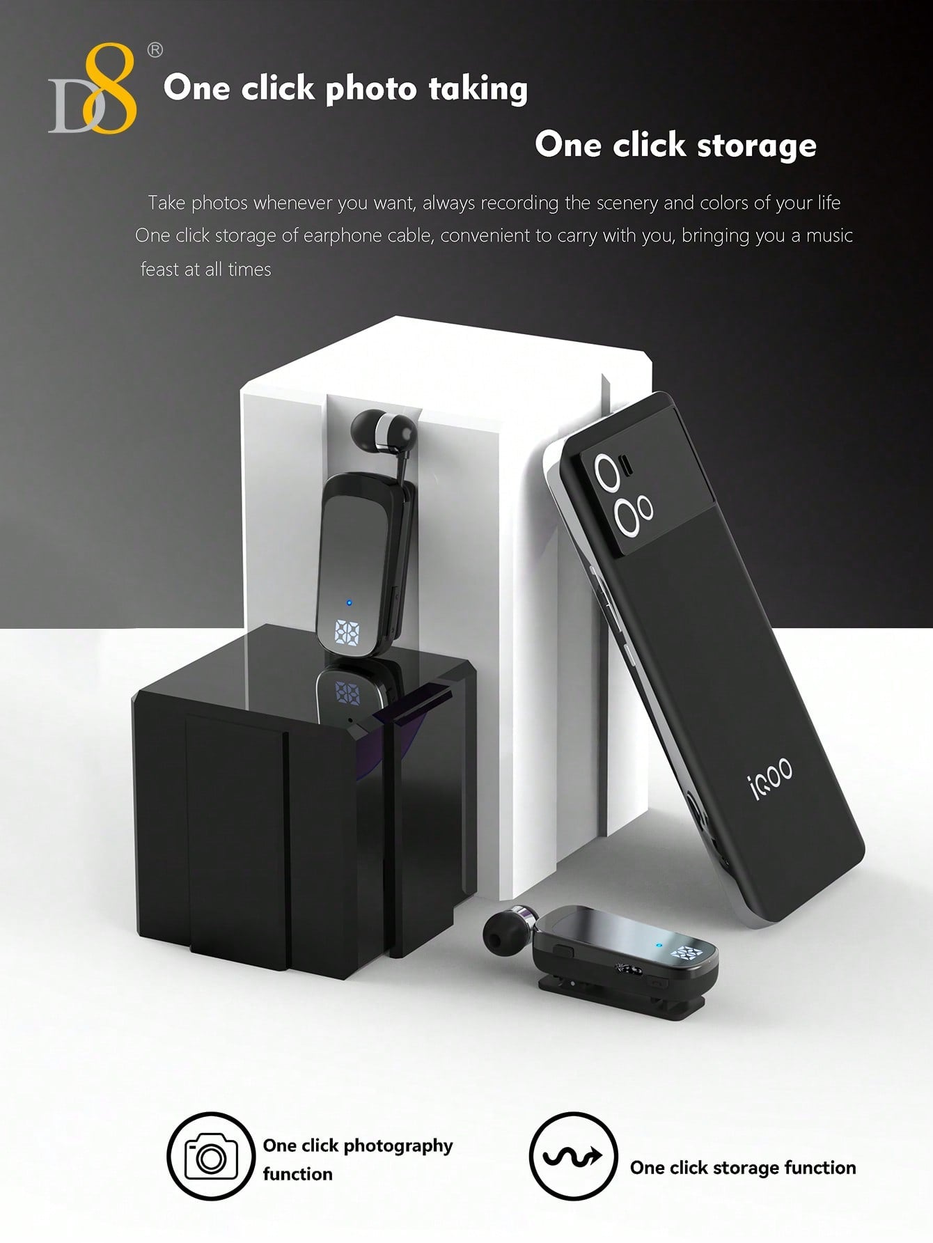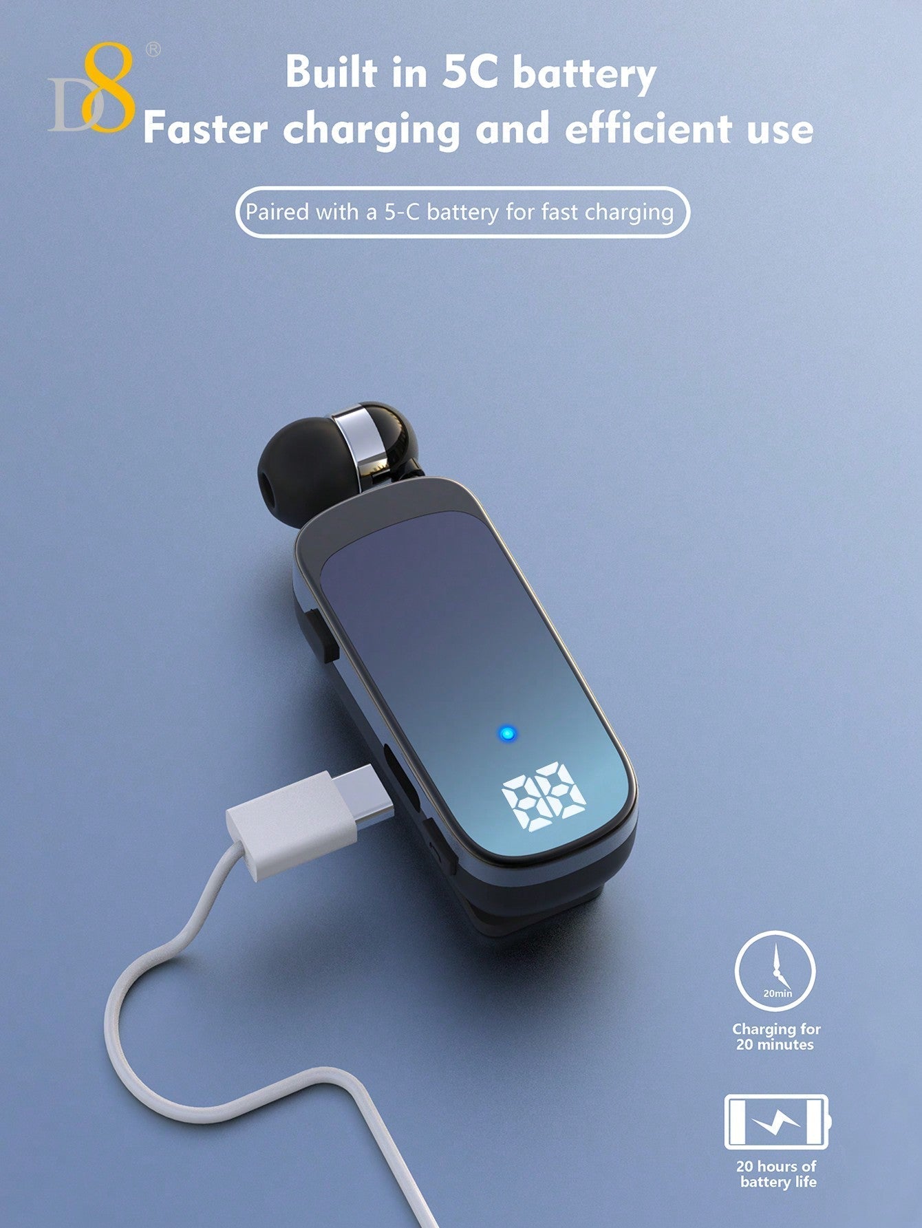 D8 Retractable Wireless Headset ,LED Display Over-Ear Buds,Headphone Stereo Earphone Noise Cancelling Mic Clip On Earpiece Comfortable HandsFree Headset 20Hrs Talking Time Sports Business Trucker Driver Earbud