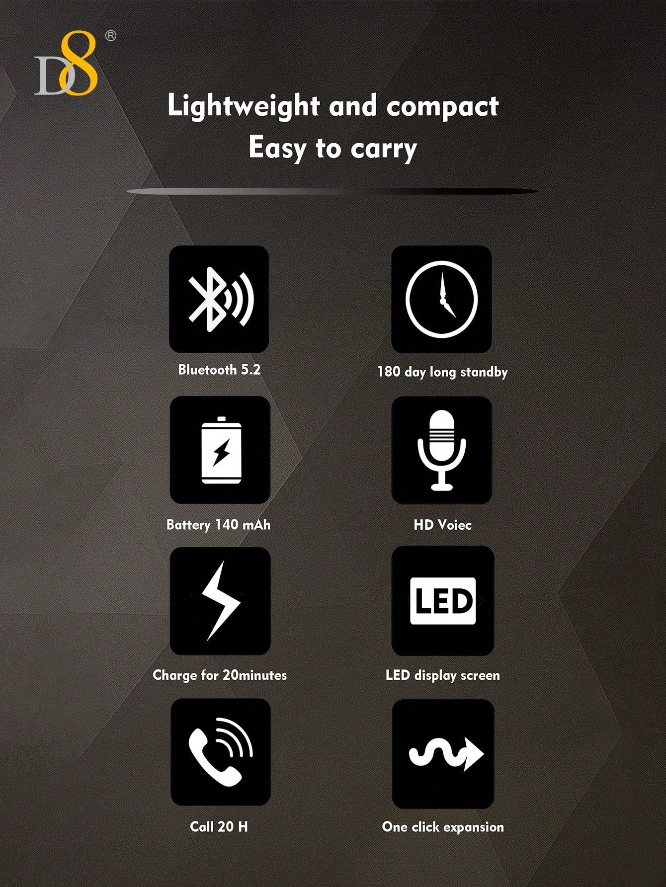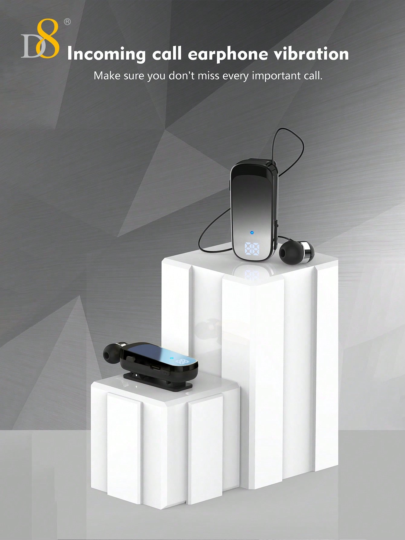 The D8 Retractable Wireless Headset is an excellent choice for those who need a reliable, comfortable, and versatile communication device. With 20 hours of talk time, noise-cancelling microphone, LED display, and comfortable clip-on earpiece, this headset is perfect for sports, business, and driving. Enjoy clear communication, extended battery life, and hands-free convenience, all in one compact, retractable headset. Stay connected no matter where you are with the D8 Retractable Wireless Headset.