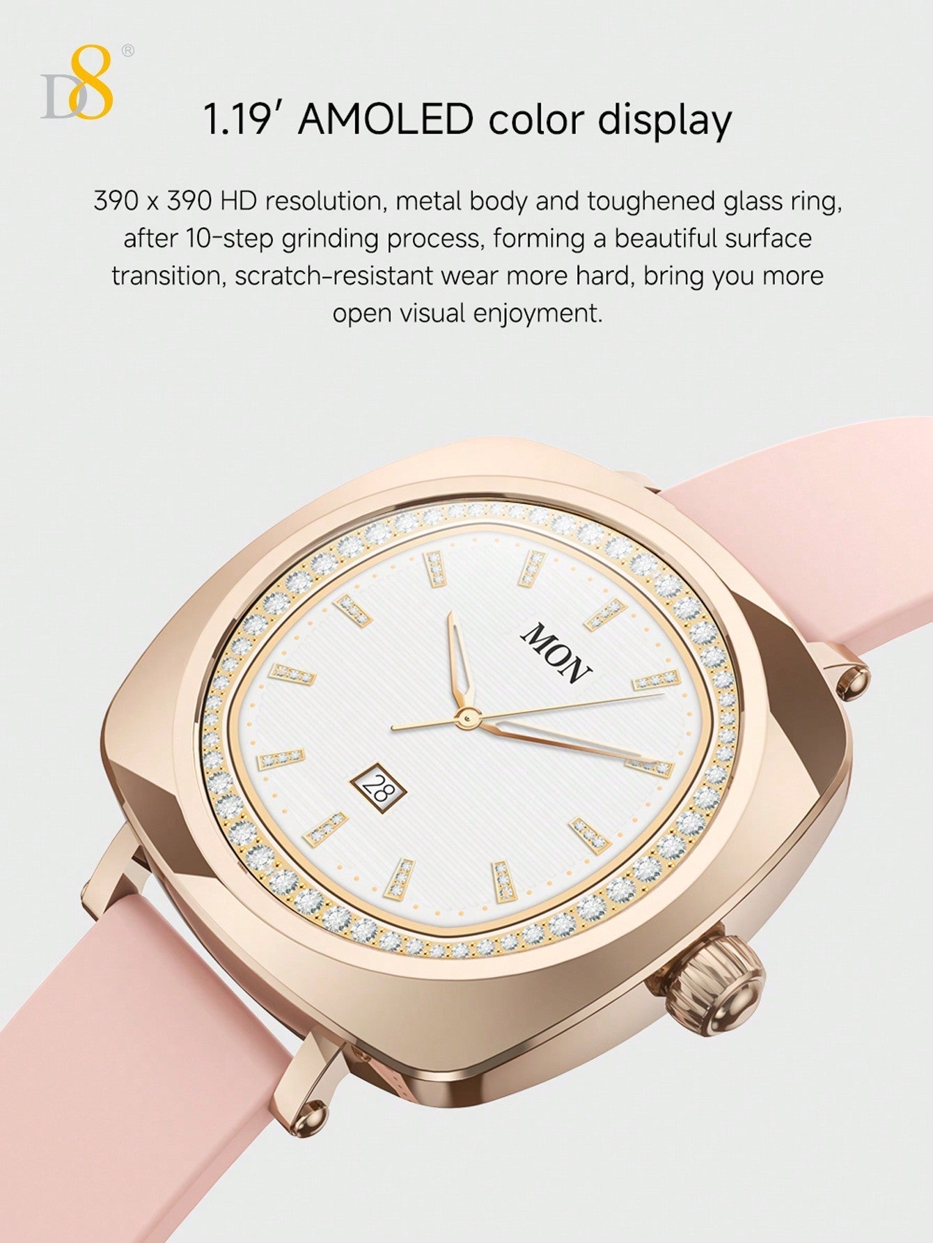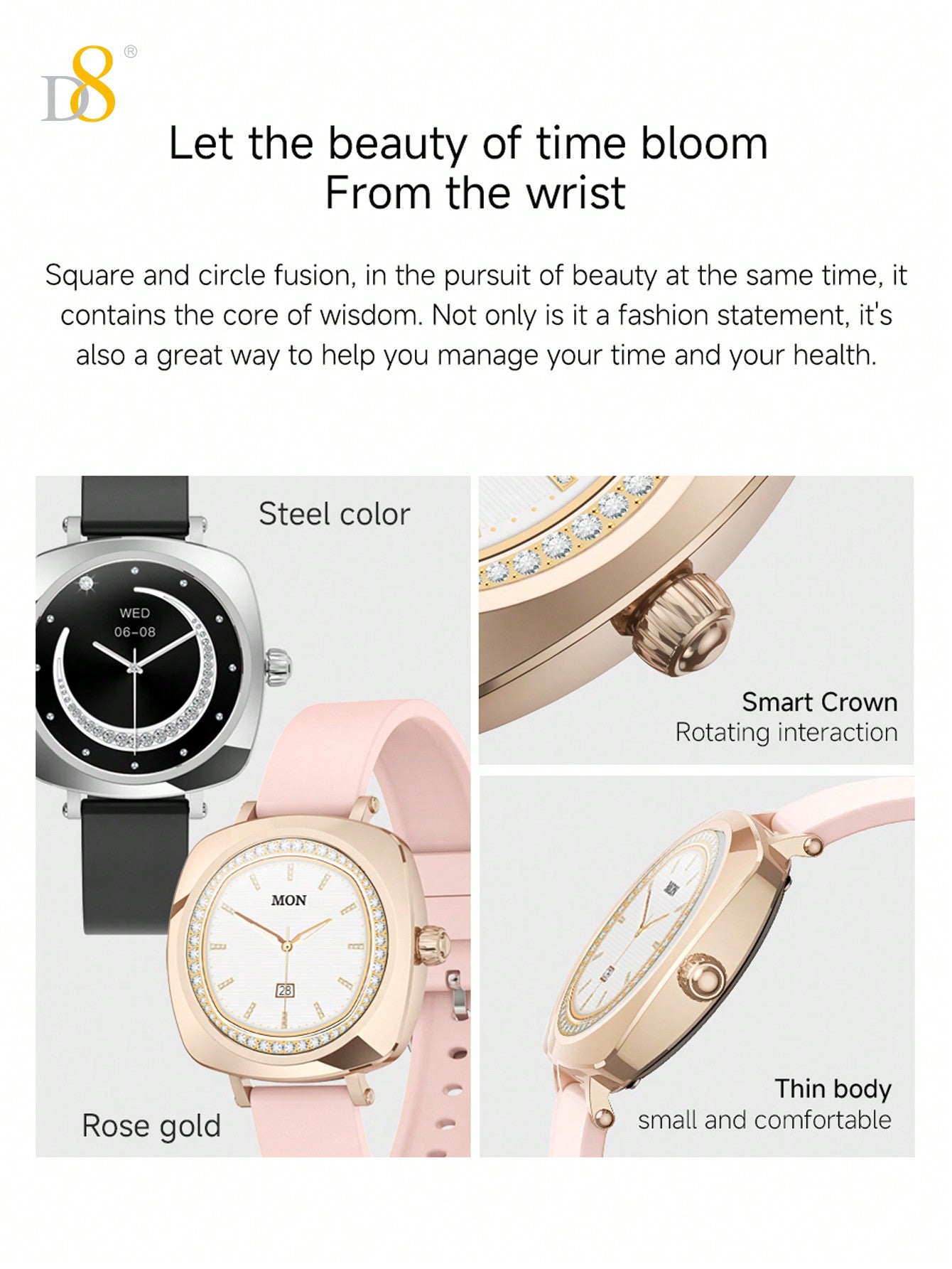 - Long-lasting Performance: Designed for women with active lifestyles, the D8 smartwatch provides reliable performance for everyday use, from fitness tracking to work and everything in between.