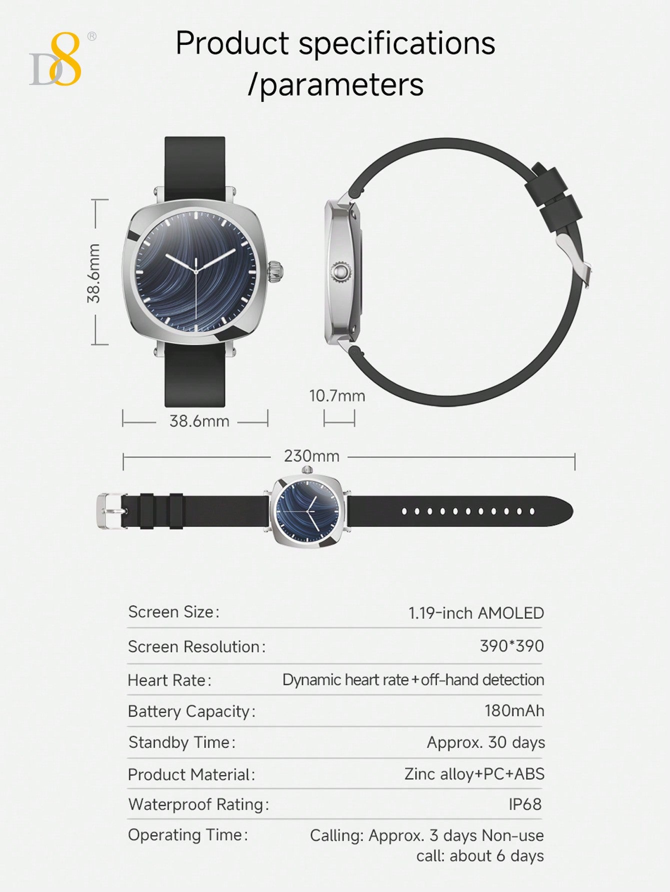 - Waterproof Protection: With IP67 waterproofing, you can confidently wear your D8 smartwatch in various environments, from the gym to the pool or even in the rain.