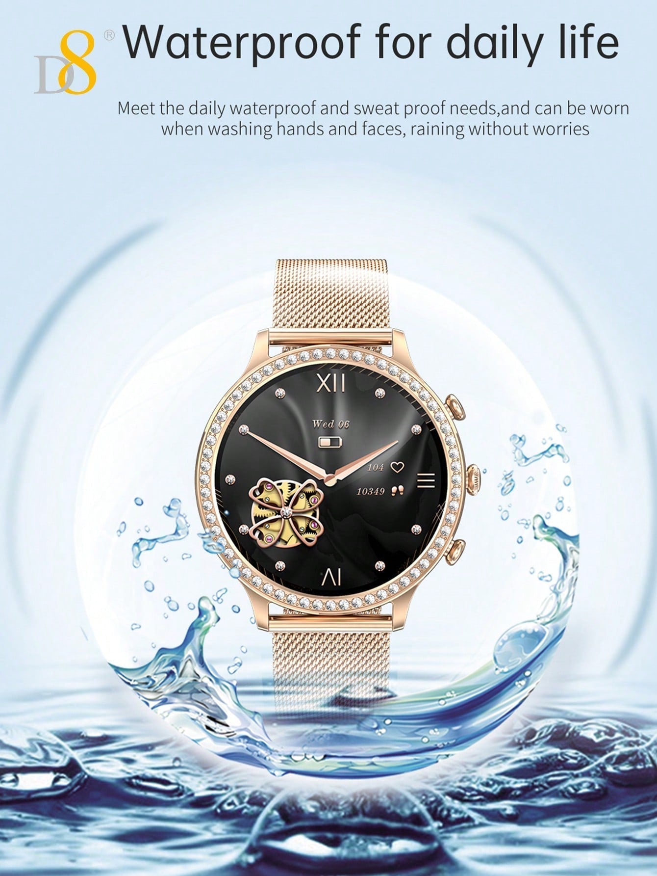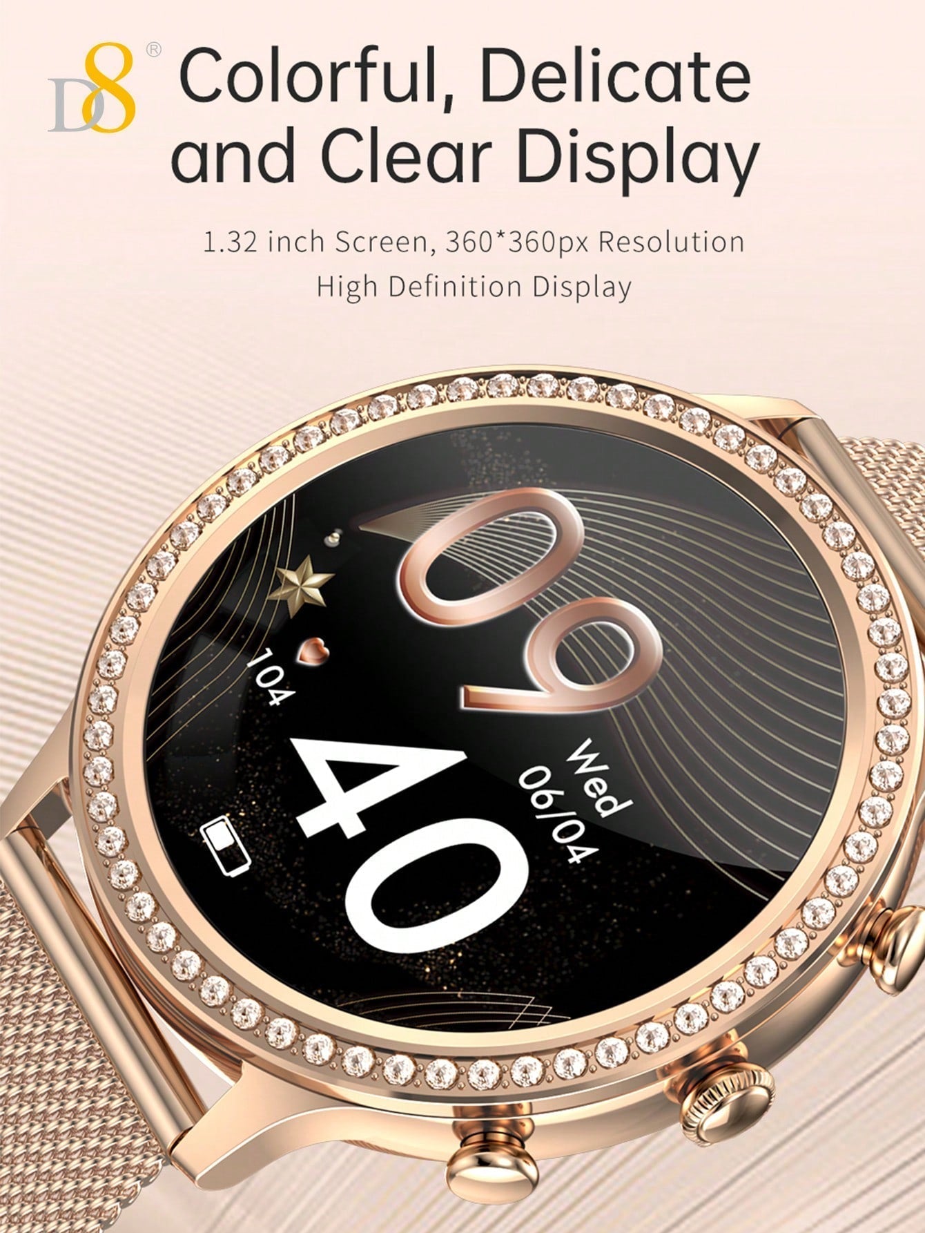 D8 Women's Smartwatch, 1.32", IP68 Waterproof, Diamond Bezel, 100+ Sports