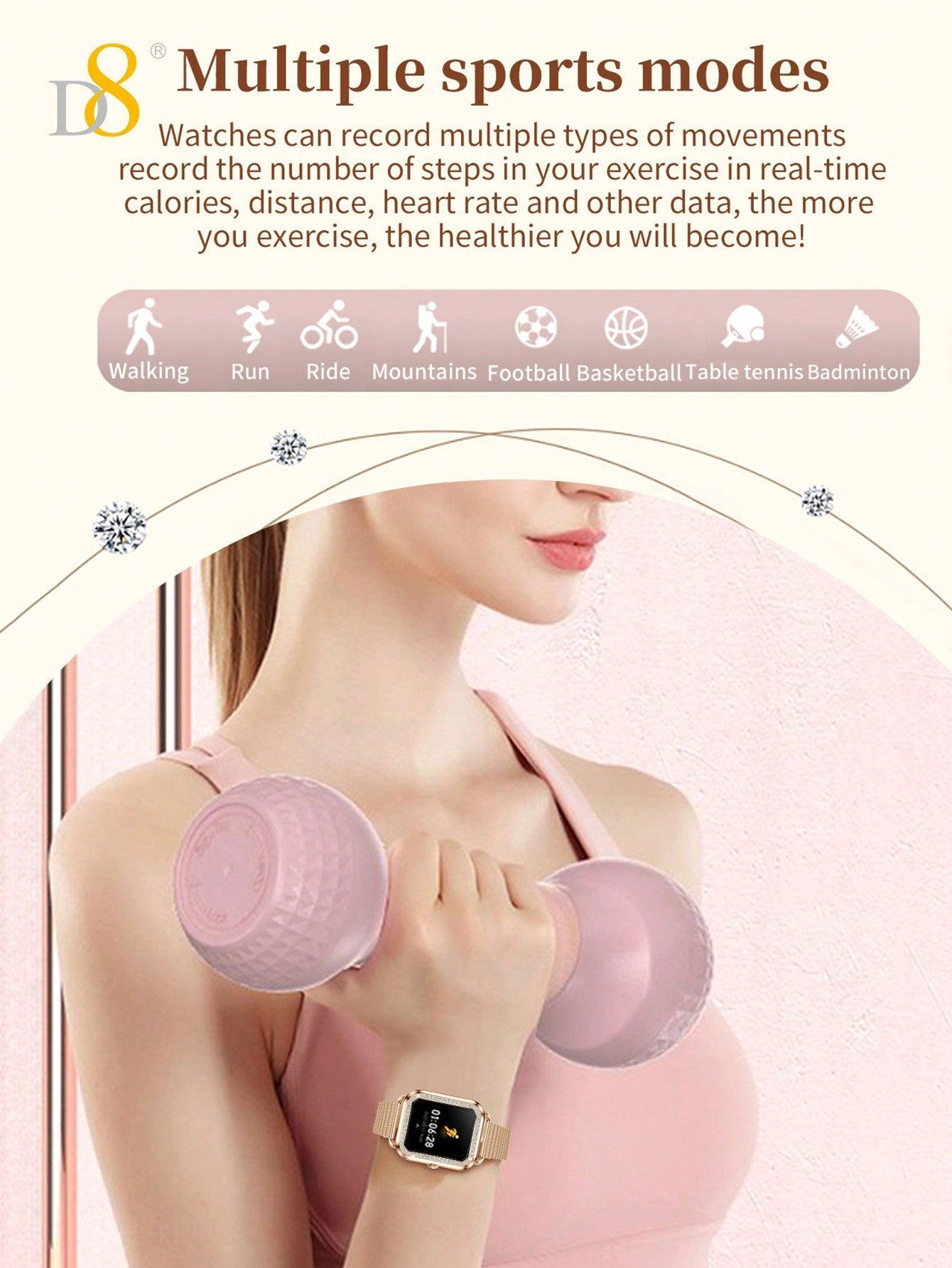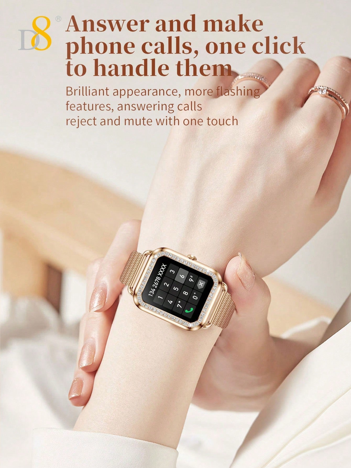 The D8 Smartwatch for Women is a versatile and luxurious smartwatch designed for those who want it all – style, performance, and functionality. With its 1.59" touchscreen, diamond-encrusted bezel, and comprehensive fitness tracking features, including 100+ sports modes, heart rate monitoring, and sleep tracking, this smartwatch is ideal for women who value both technology and elegance. Whether you're keeping fit, managing your calls, or enhancing your daily routines, the D8 Smartwatch ensures you stay on top of everything with ease and style.