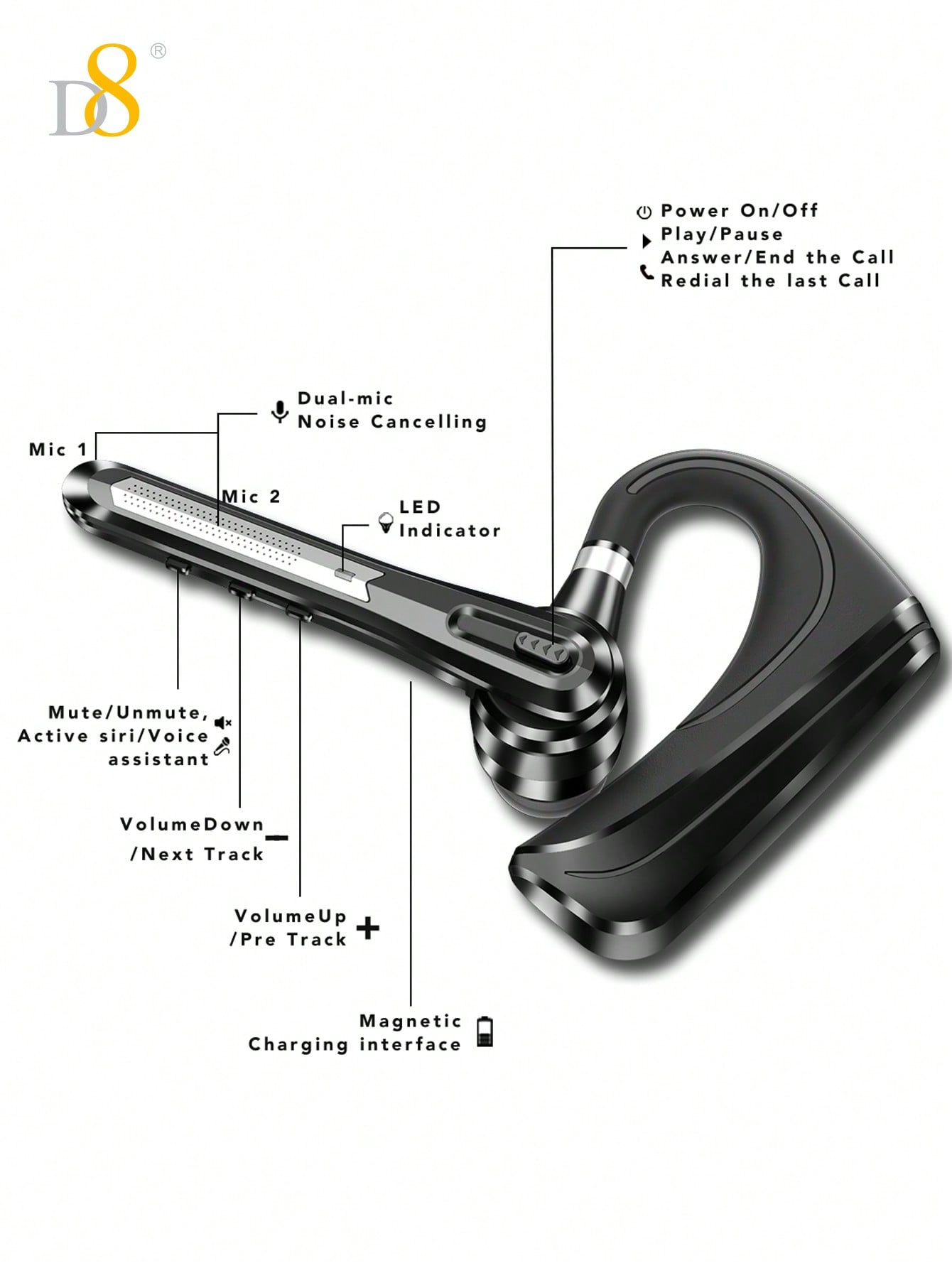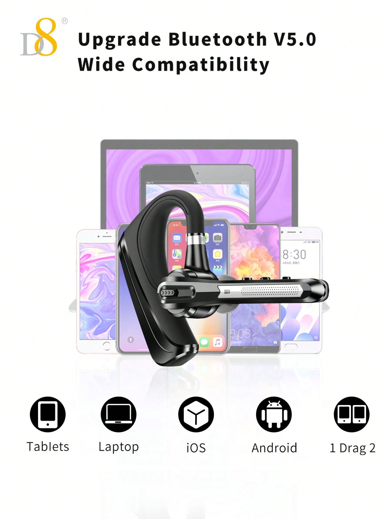 - Universal Compatibility: The D8 TWS earbuds work seamlessly with Android and iOS devices, making them versatile and compatible with a wide range of smartphones, tablets, and music players.