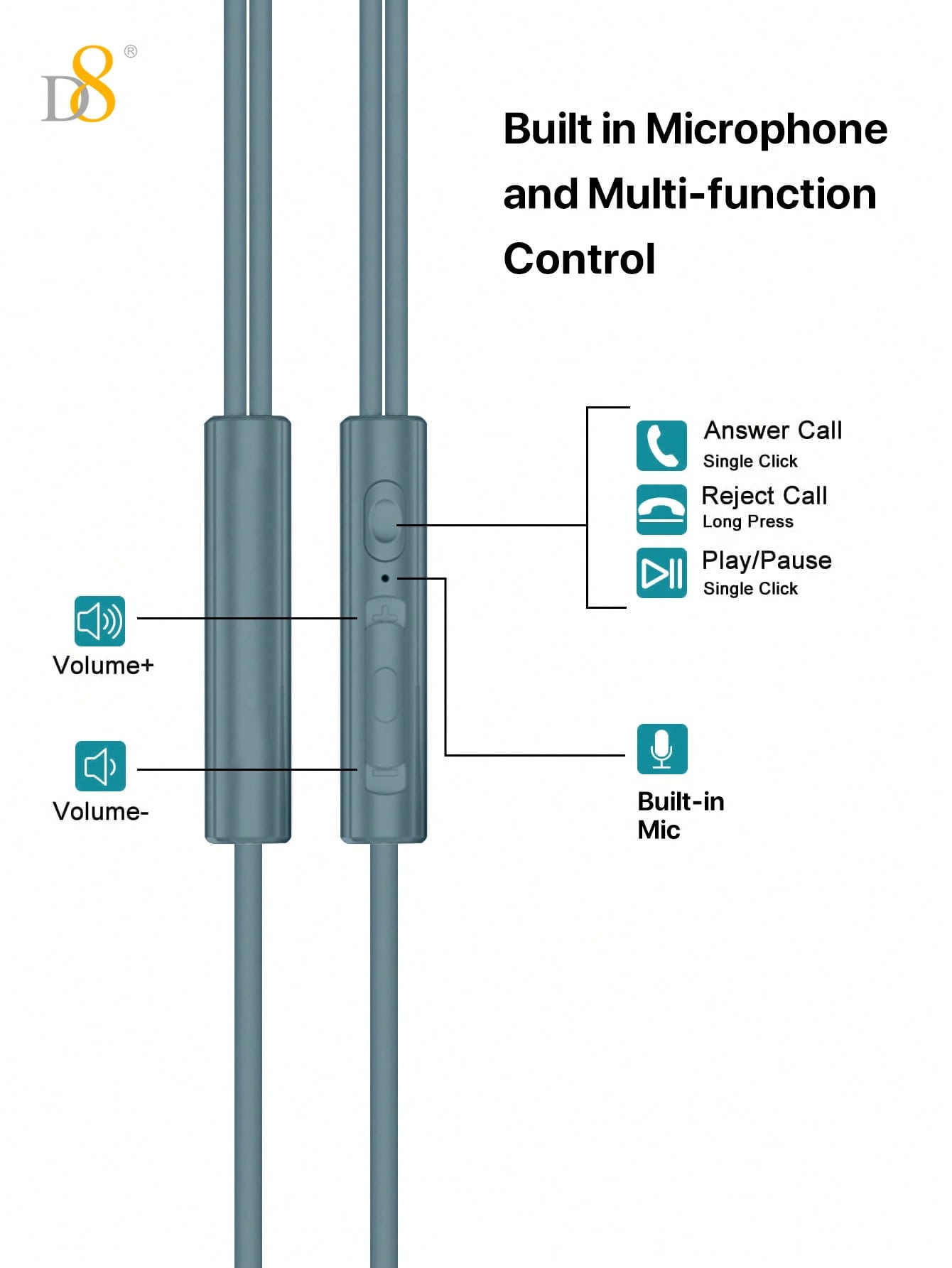 The D8 Type-C Earphones are your ultimate solution for superior audio and convenient control. Whether you're streaming music, attending calls, or enjoying podcasts, these in-ear earbuds deliver high-fidelity sound and ergonomic comfort for every occasion. With wide compatibility and noise isolation, they offer an exceptional listening experience for all your daily activities. Upgrade your audio experience today with the D8 Type-C Earphones!