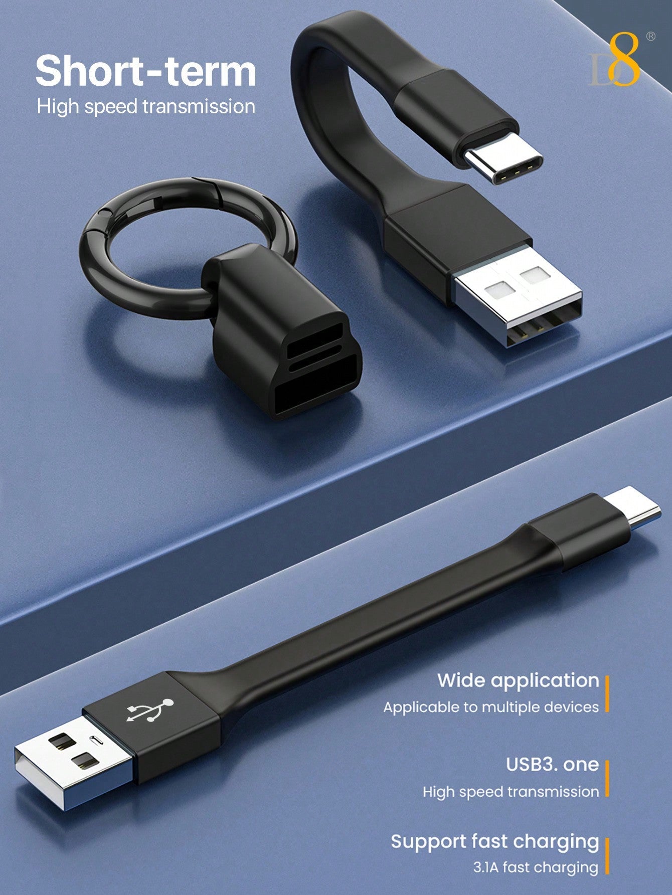 - Universal Compatibility: Whether you own an iPhone, Samsung Galaxy, or any USB-C powered device, the D8 USB C Keychain Cable ensures a seamless experience with quick connectivity and charging.