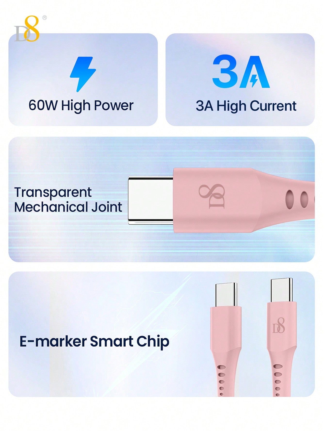 The D8 USB C Keychain Data Cable is the ultimate portable solution for fast charging and data transfer. Designed for convenience, this Type C charging cord is perfect for everyday use. Whether you're on the go, at work, or traveling, this 60W/3A USB C cable ensures fast charging and quick data transfer for a range of devices including the iPhone 16, iPhone 15 Pro Max, MacBook, iPad Pro 2023, and more. Its compact keychain design makes it easy to carry and use anywhere.