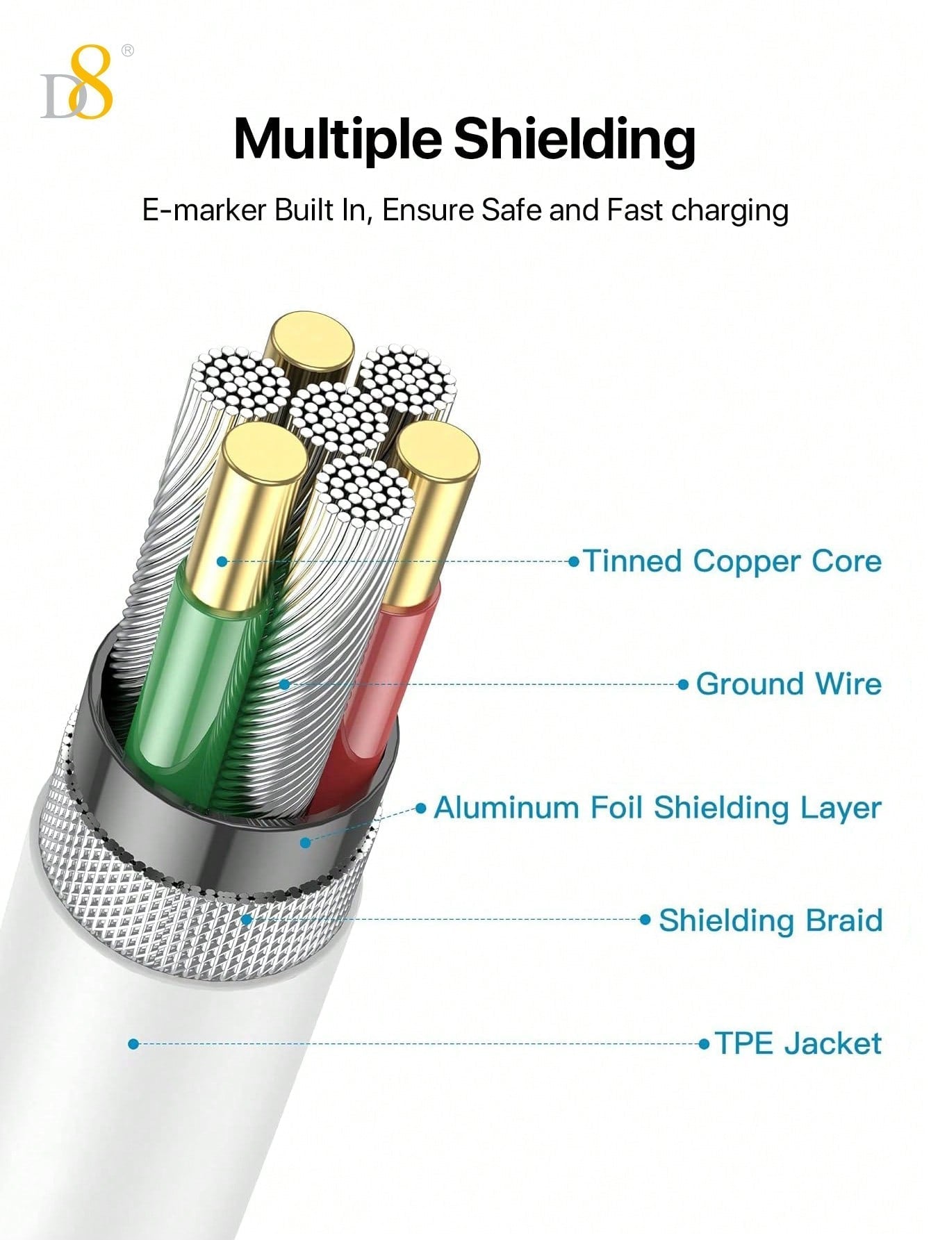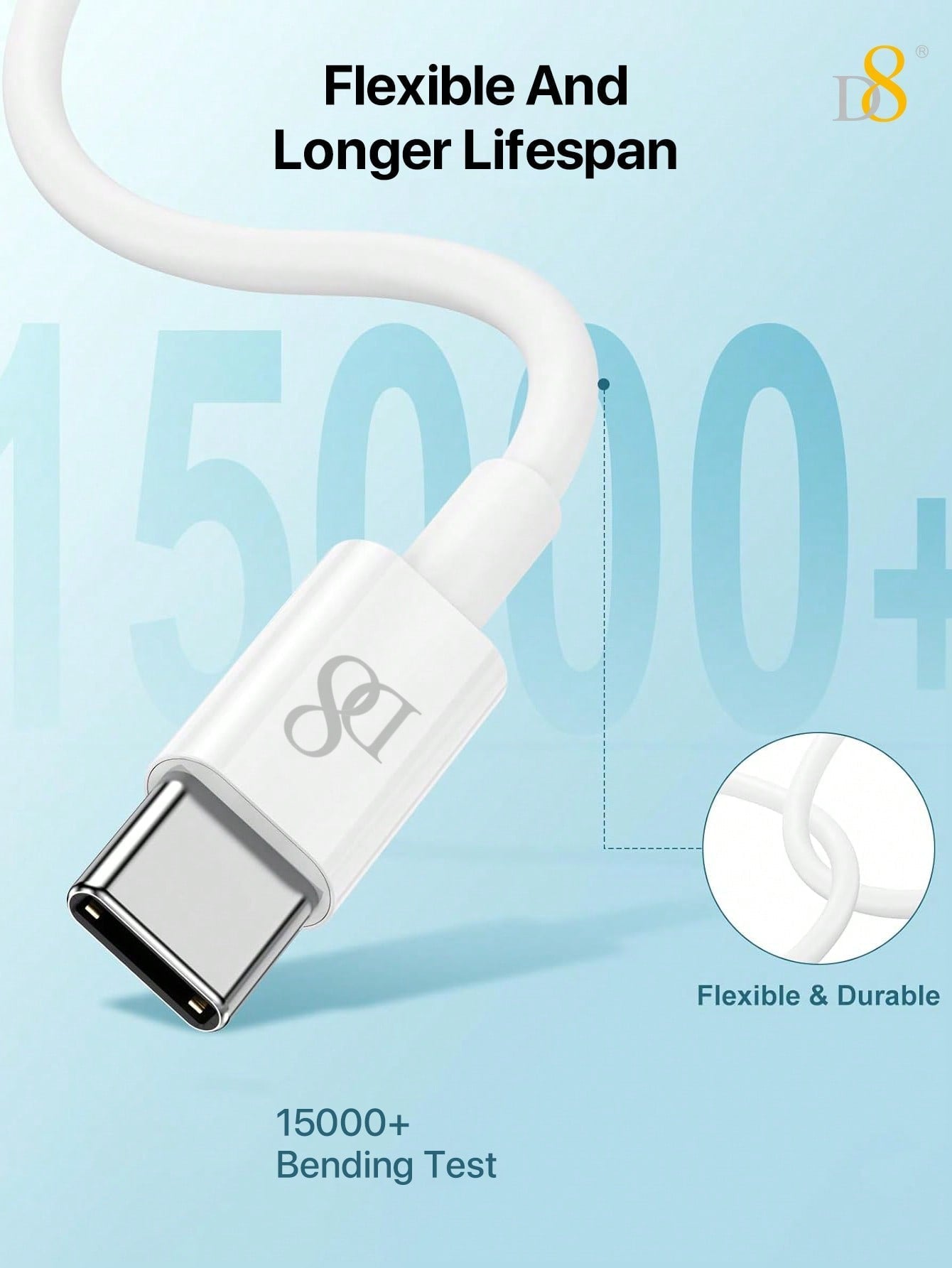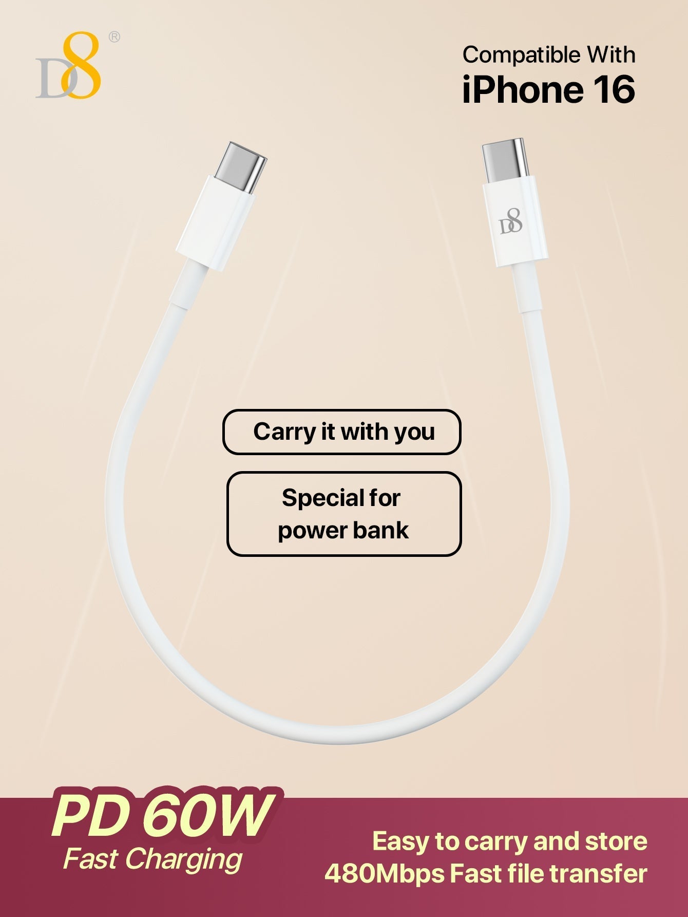 The D8 USB C to USB C Cable (0.83ft, 60W/3A) is a premium short charging cable designed to provide fast charging and efficient data transfer for your USB C-compatible devices. This Type C charging cable supports 60W power delivery and is perfect for your iPhone 16, iPhone 16 Pro, iPad Pro 2023, iPad Air 5, Samsung Galaxy S23, and other USB C devices. With a durable TPE design and compact length, this cable ensures reliable and swift performance, whether you're at home, work, or on the go.