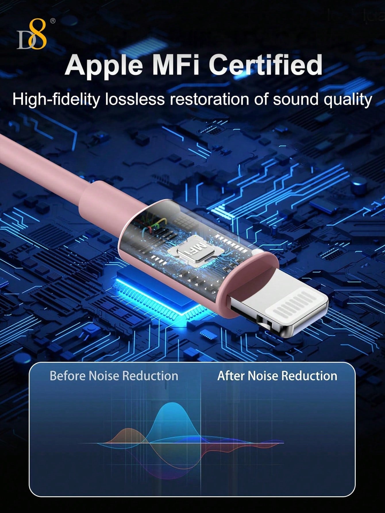 The D8 Wired In-Ear Headphones with Lightning Connector are designed to offer exceptional sound quality, comfort, and convenience. These sound-isolating earbuds are perfect for those seeking a reliable, high-quality listening experience. Whether you’re making calls, listening to music, or watching videos, these MFi-certified earbuds deliver rich, clear sound with seamless compatibility with iPhone 14, 13, 12, 11 Pro models and other devices with a Lightning connector. With a tangle-free cable and built-in microphone, these earbuds are your perfect companion for everyday use.