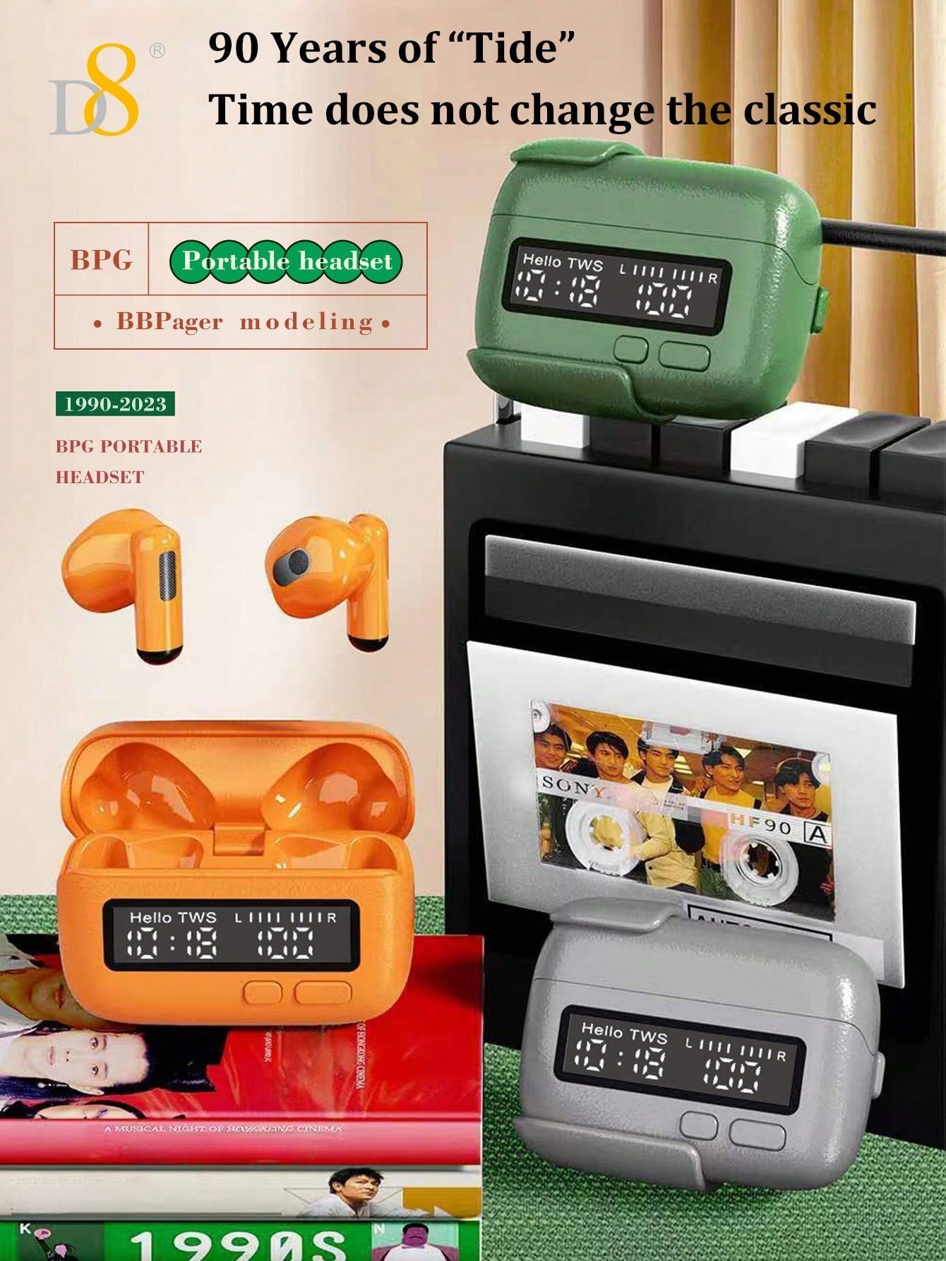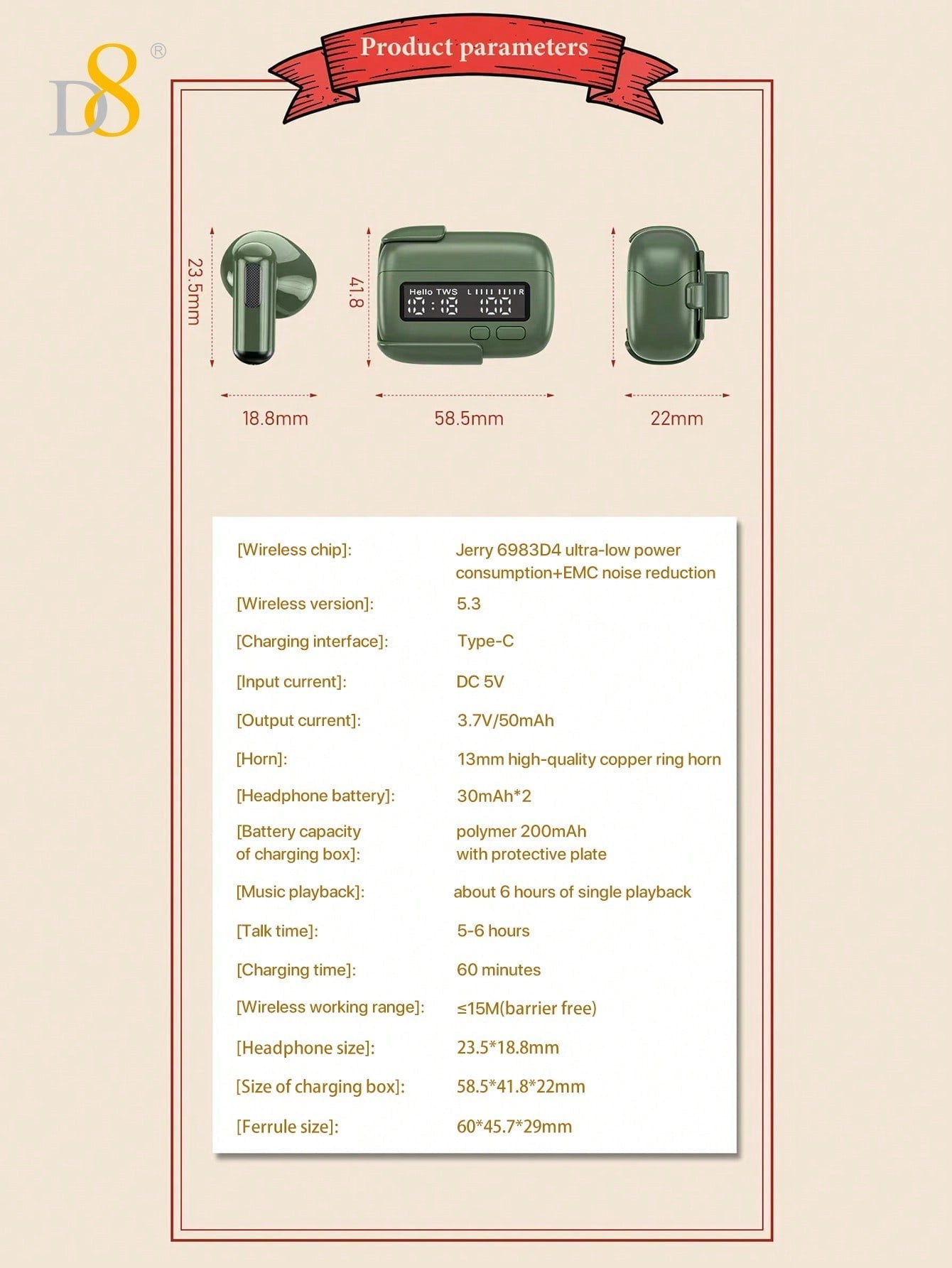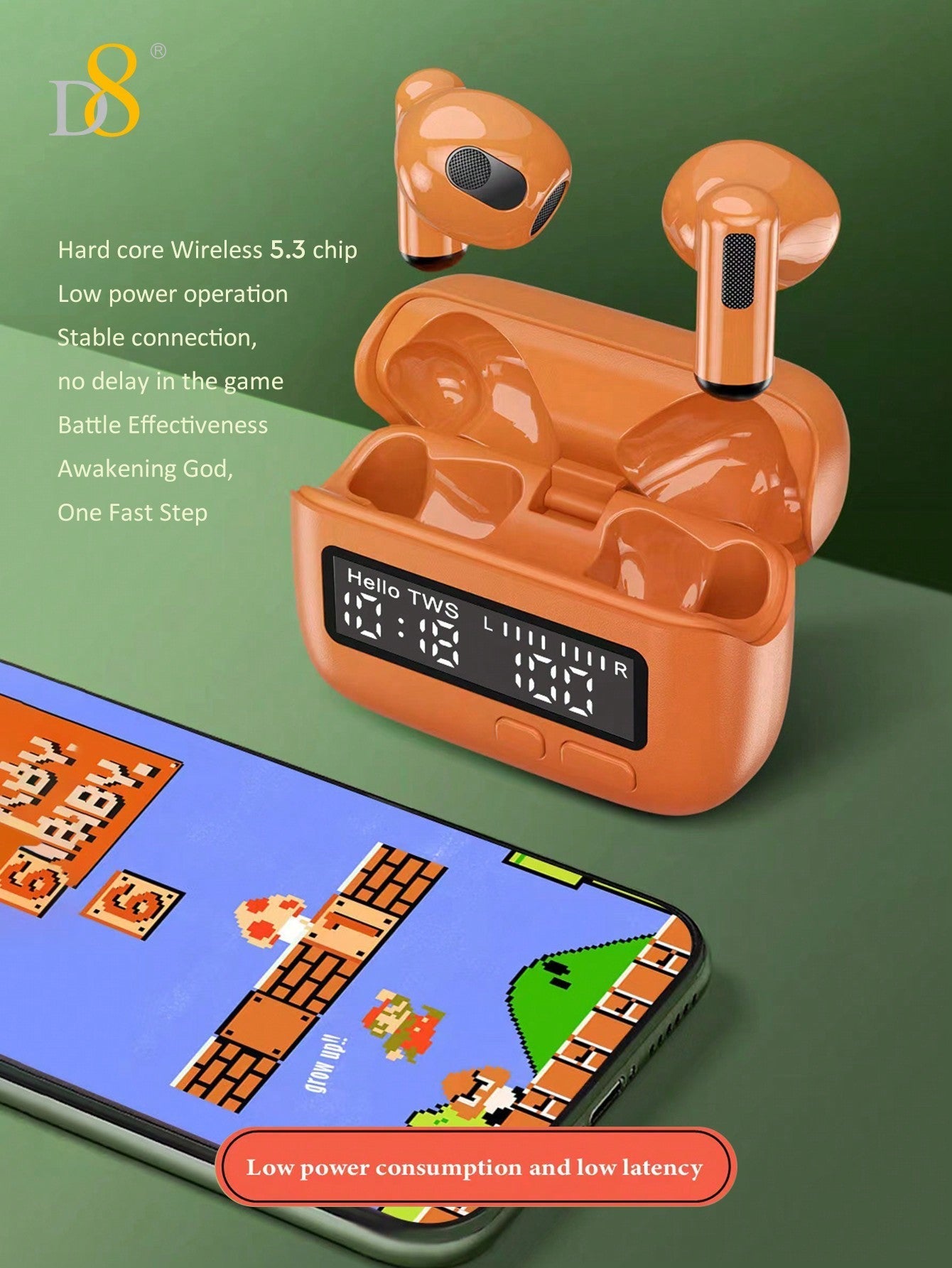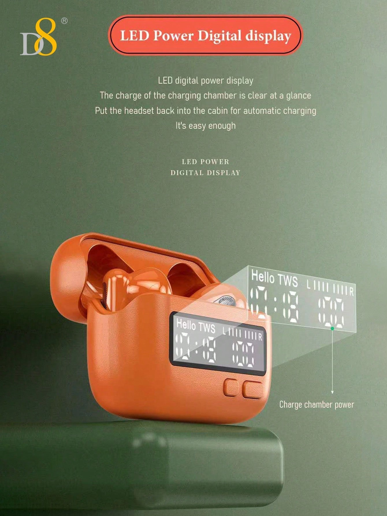 D8 Wireless Earbuds, Bass Stereo, LED Display, Mic, Button Control, Removable