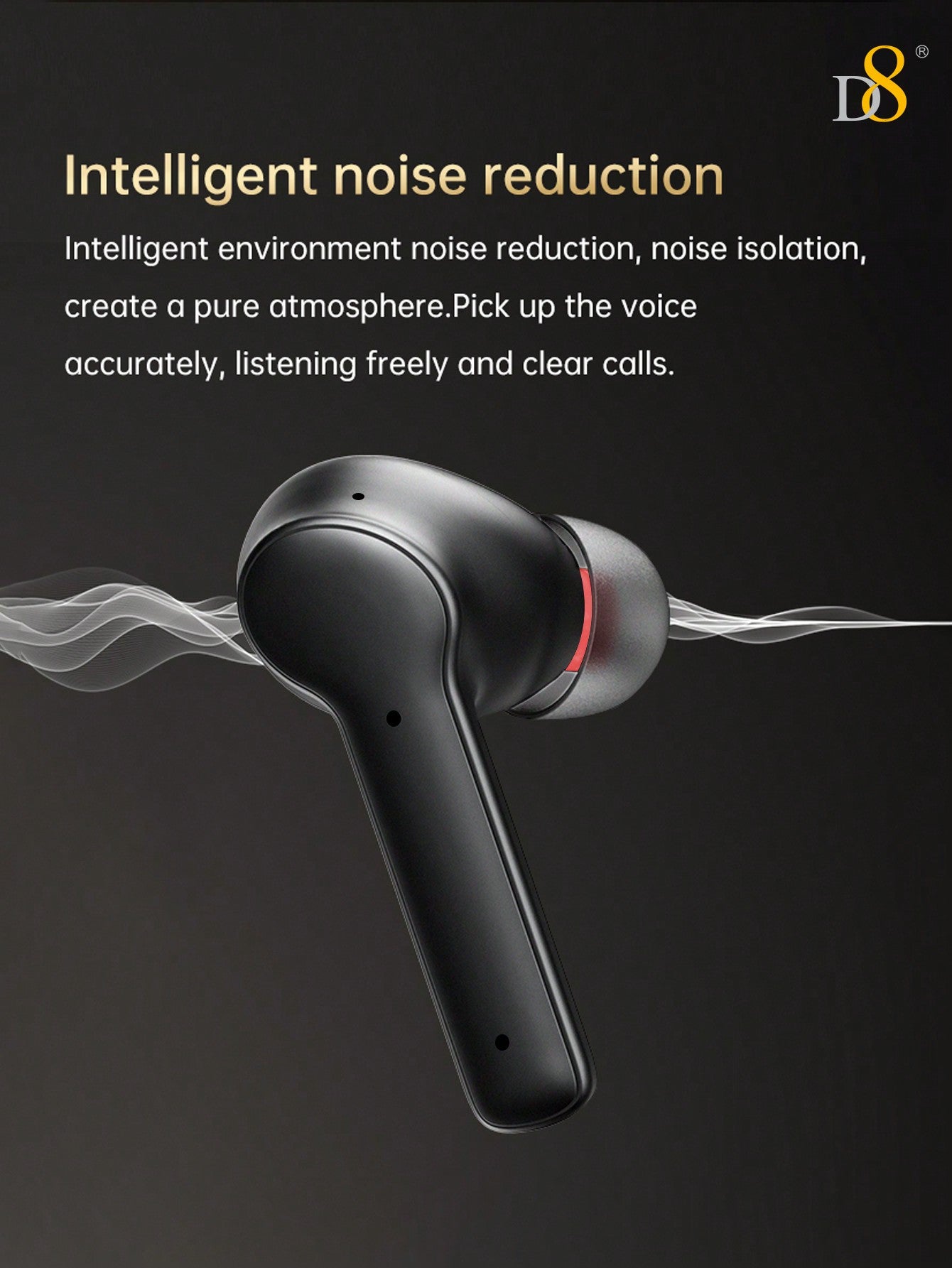 - All-Day Comfort: Lightweight and ergonomically designed, the D8 Wireless Earbuds offer long-lasting comfort, even during extended listening sessions, without causing discomfort or ear fatigue.