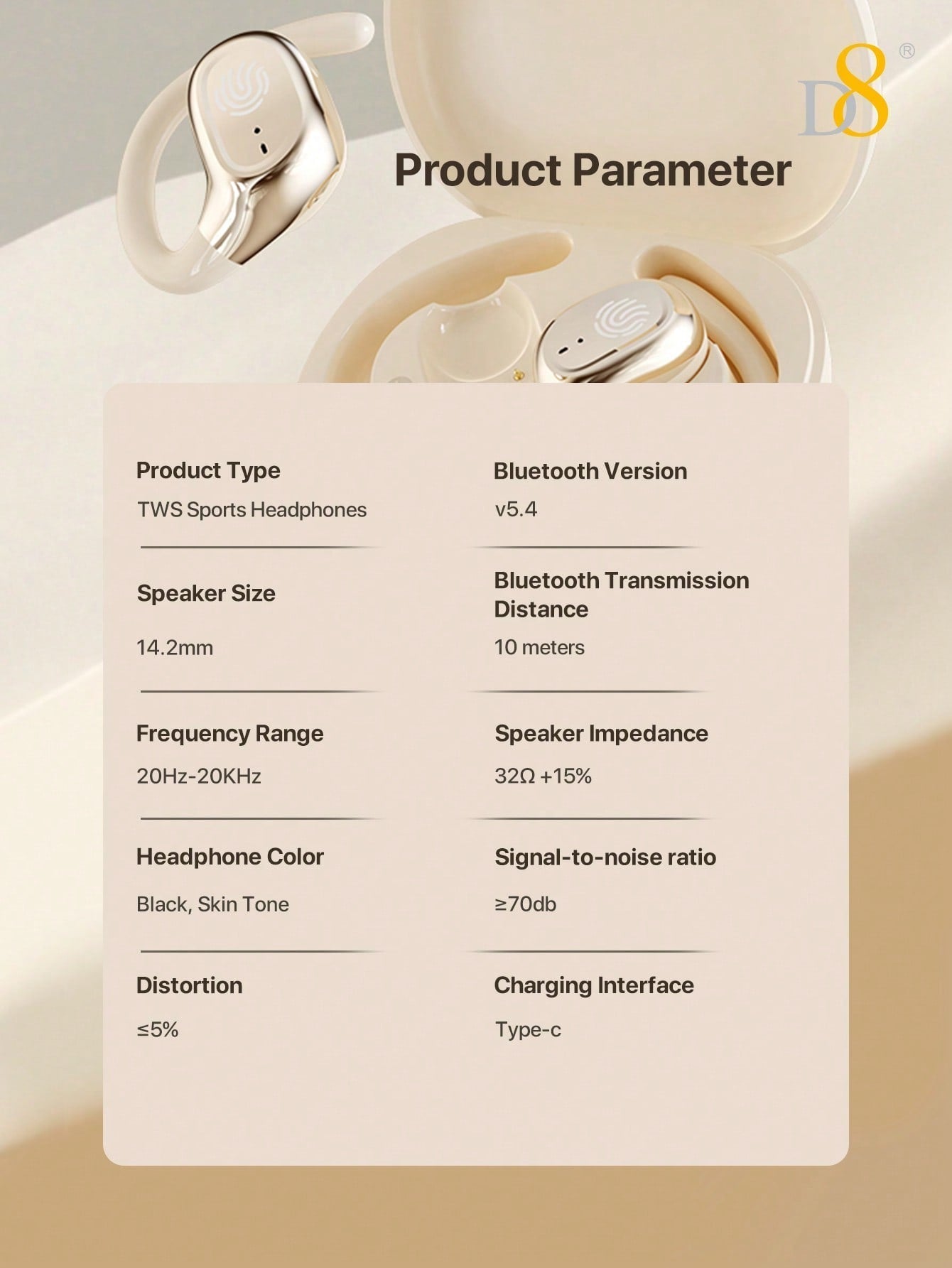D8 Wireless Sport Earbuds, Noise-Canceling Mic, 72H Battery, HiFi Sound, USB-C