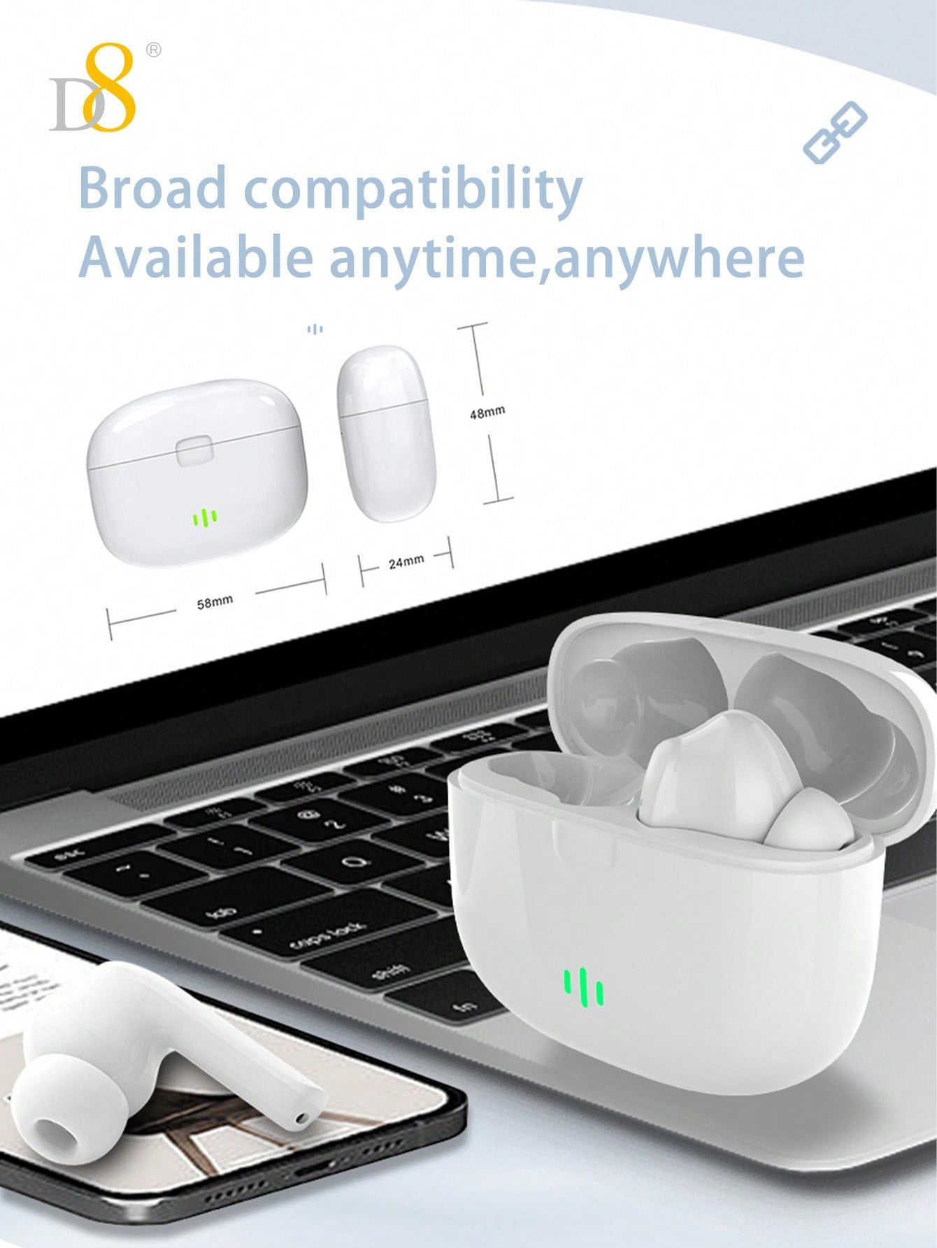 The D8 Wireless Earbuds deliver an exceptional audio experience with Stereo Bass and 13mm drivers, perfect for music lovers and professionals alike. Offering a 5.3 Bluetooth connection for seamless pairing, these earbuds are designed for long-lasting use with up to 4 hours of music and talk time, and an impressive 300 hours of standby time. Ideal for sports, workouts, or daily activities, these ergonomic earbuds fit comfortably in your ears, making them the perfect companion for Android and iOS devices. The USB-C mini charging case ensures that you can easily power up your earbuds wherever you go.