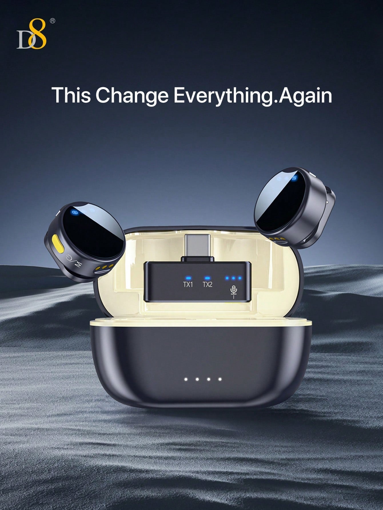 The D8 Wireless Lavalier Microphone offers the ultimate combination of portability, professional-grade sound, and long-lasting battery life. With auto-sync technology, noise reduction, and 23 hours of battery life, this mini lapel mic is perfect for content creators, professionals, and anyone looking to record high-quality audio effortlessly. Whether you're recording a podcast, conducting an interview, or streaming live, the D8 mic ensures your audio will always sound clear and professional.