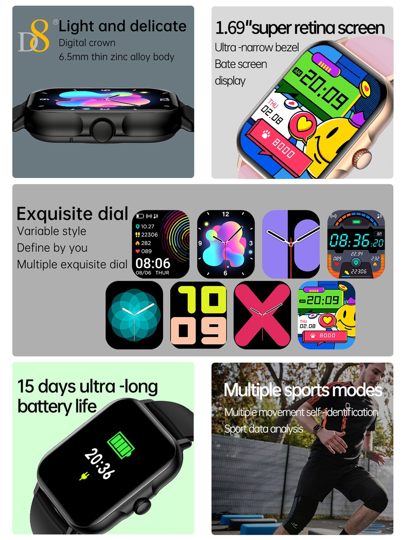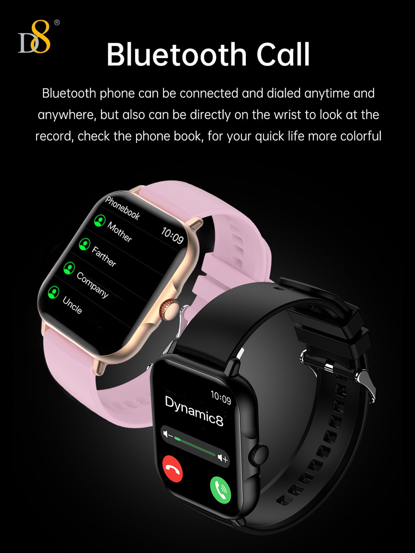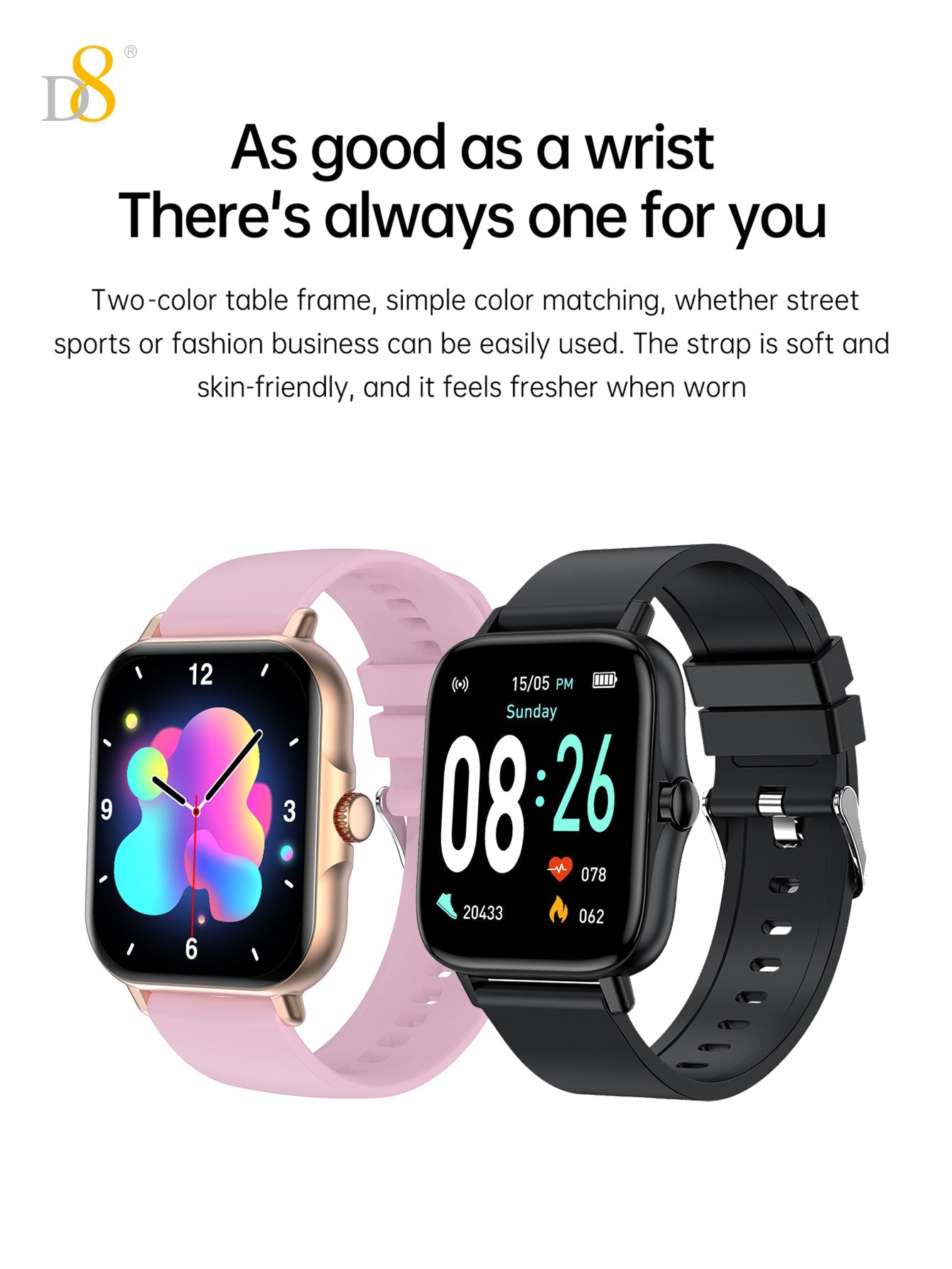 The D8UP3 Smart Watch is an excellent choice for anyone seeking a comprehensive smartwatch that combines health monitoring, sport tracking, and communication features in one sleek, stylish package. With its call functionality, fitness tracking, sport detection, and health monitoring capabilities, it provides an all-in-one solution for both active individuals and those who want to stay connected. Whether you're working out or on the go, the IP67 waterproof feature and long battery life ensure you can rely on the D8UP3 Smart Watch for any activity. Compatible with both iOS and Android, it offers a seamless experience for all users.