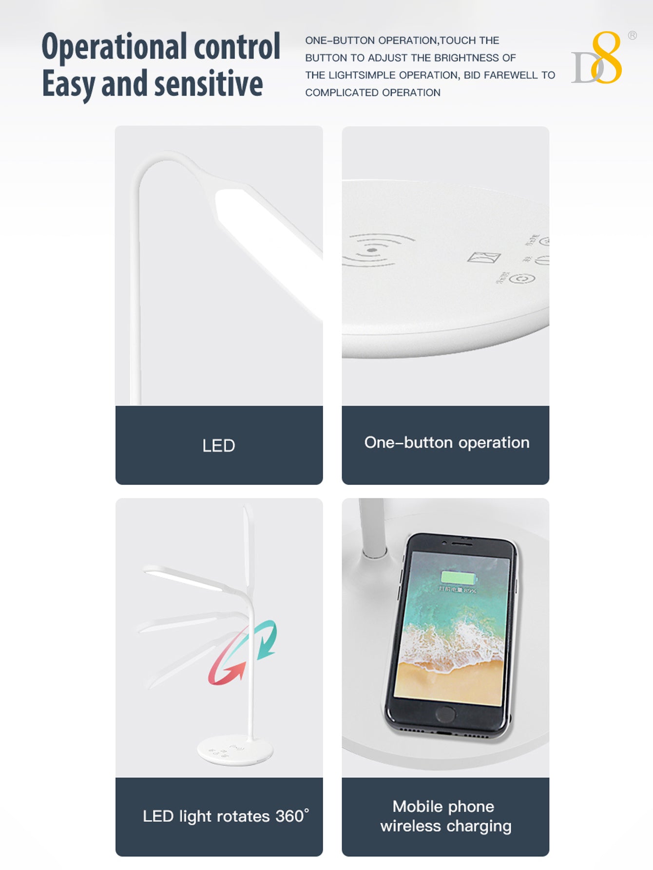 Conclusion: Upgrade your workspace or living area with the Dynamic8 Wireless Charging LED Desk Lamp, designed to meet modern-day demands for both illumination and device charging. Experience the convenience of integrated wireless technology and versatile lighting options. Order now to enhance your productivity and lifestyle!